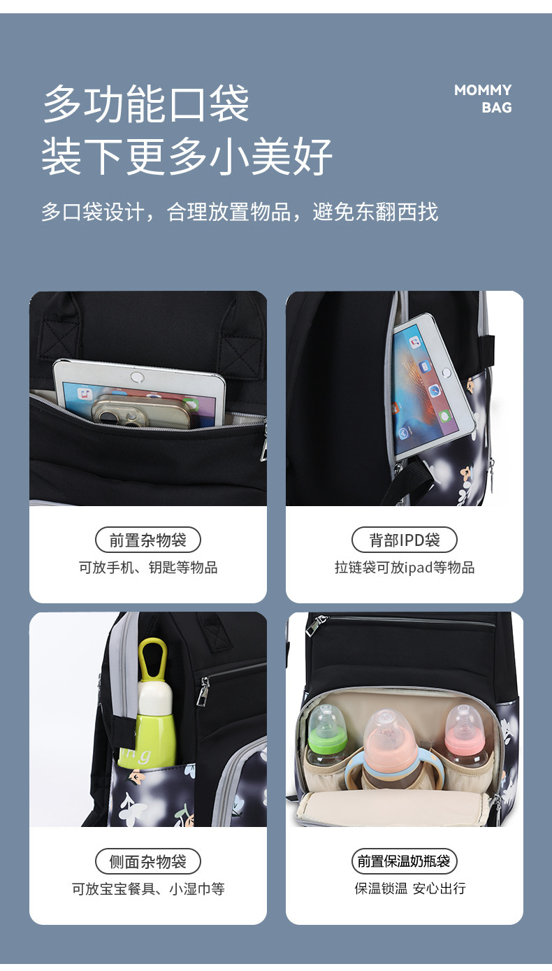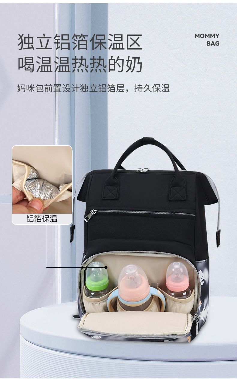 Bolsa de mamá nueva moda impresa mochila de viaje portátil mochila de mano bolsa de biberón independiente bolsa de bebé