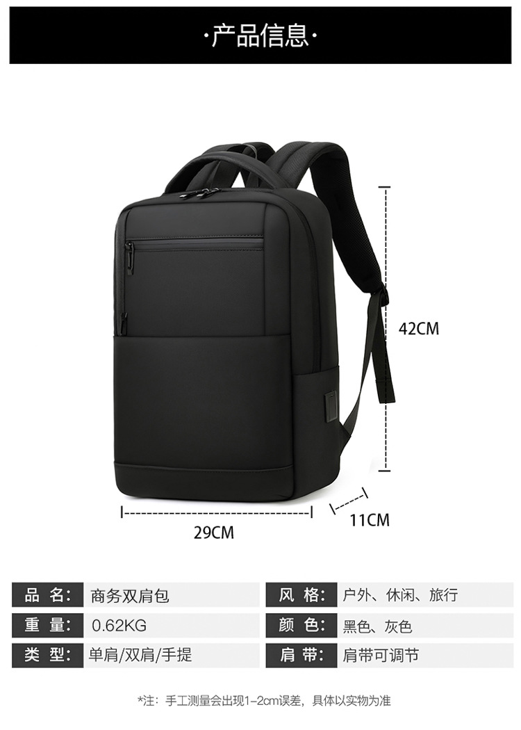 Mochila personalizada, bolso de hombre de negocios de moda, mochila ligera de gran capacidad, bolsa de computadora transfronteriza transpirable de reducción de carga de color sólido