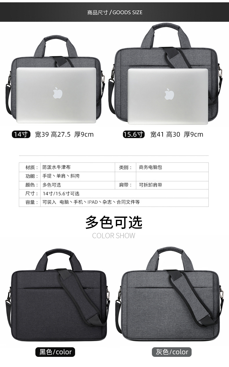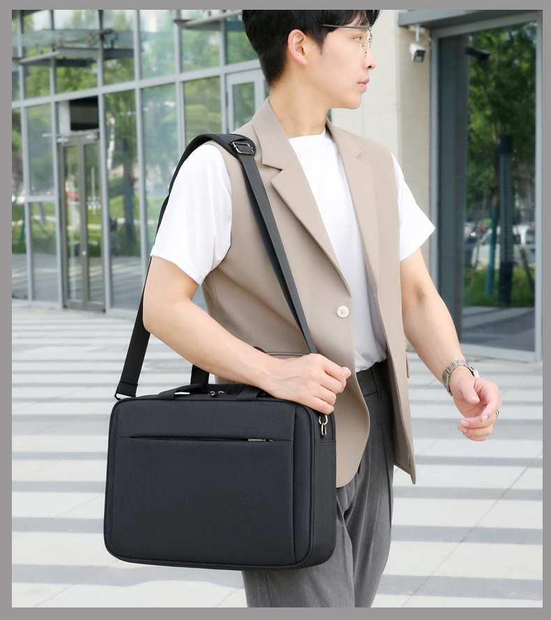 Bolso de computadora transfronterizo de doble capa de 15,6 pulgadas maletín de gran capacidad bolsa de almacenamiento de datos puede colgar tirantes bolso de viaje de negocios