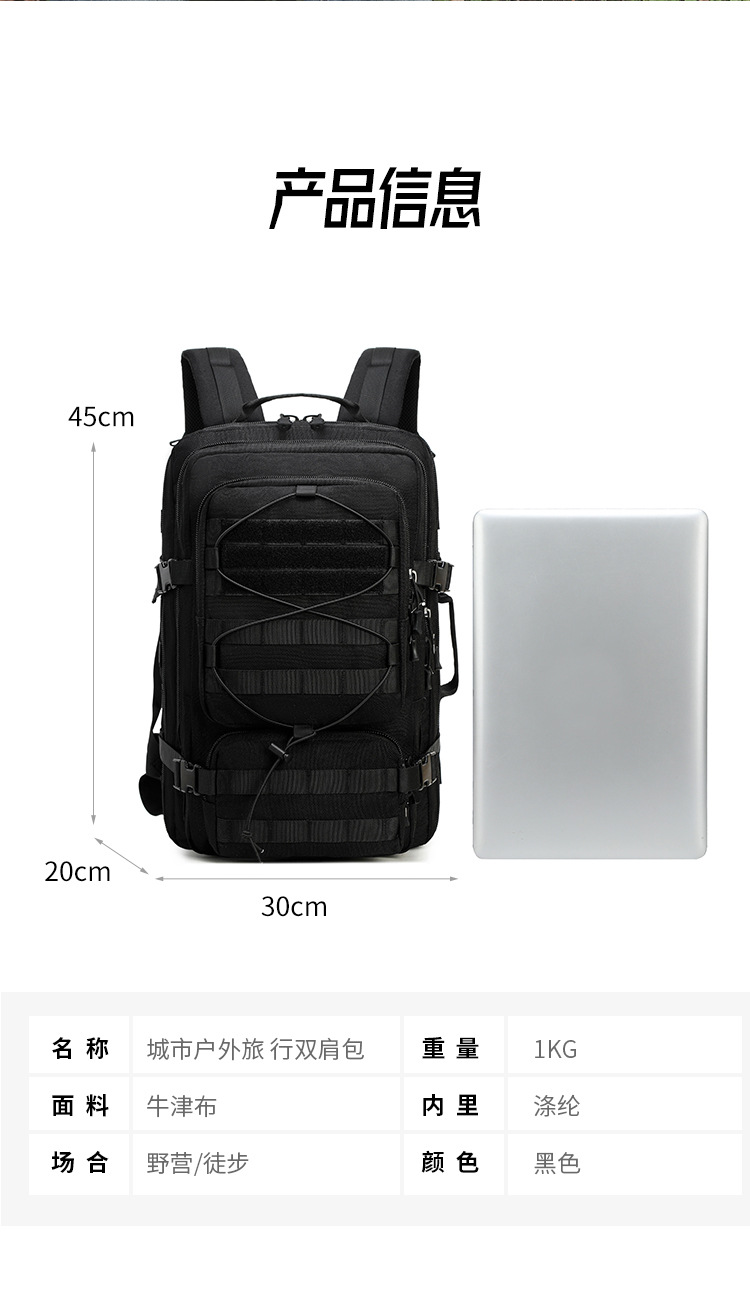 Mochila deportiva resistente a la abrasión 1000D, mochila táctica multifuncional para montañismo al aire libre, estilo camping para senderismo, transpirable y que reduce la carga
