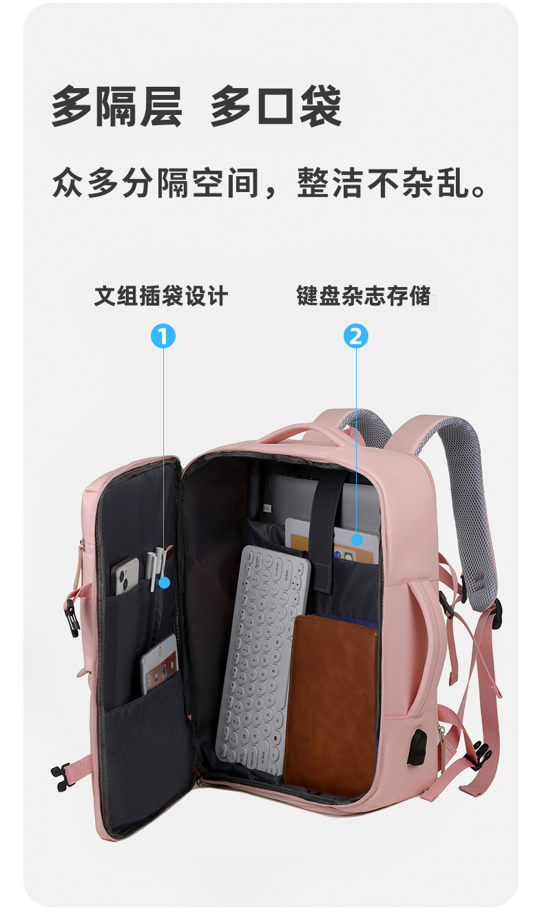 Larga capacidad de colgar tirón USB mochila de negocios expandible multicapa de almacenamiento mochila escolar a prueba de rociadores bolsas de computadora de estudiantes