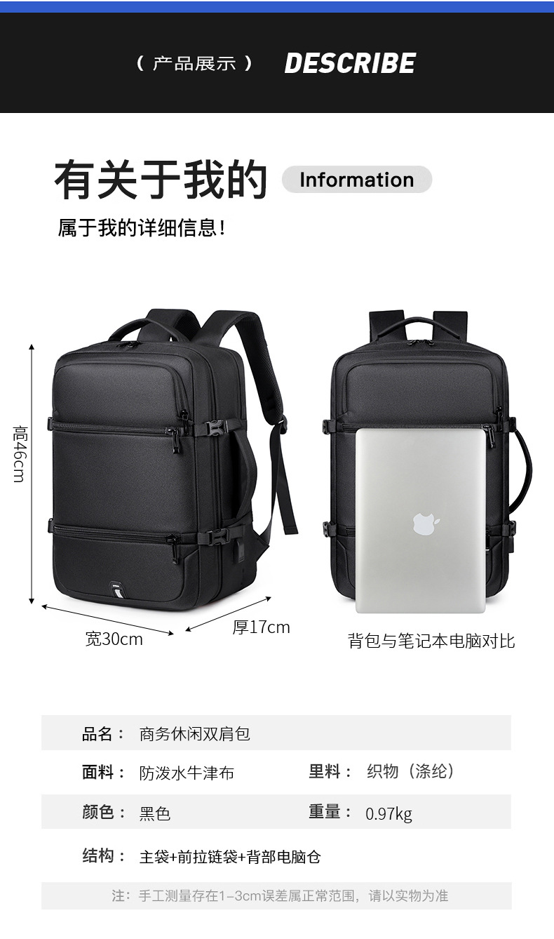Mochila multifuncional transfronteriza Bolso de computadora de negocios para hombre Bolso de viaje al aire libre Bolso de mochila portátil de gran capacidad Libro