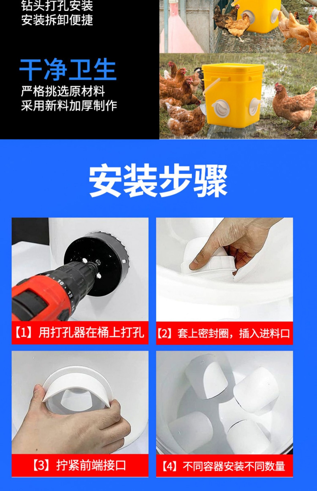 | Especificaciones del producto | 4 bocas de alimentación de barril de 12 litros (1,12 kg),Tazón de agua de pollo de cubo de 12 litros 8 (0,9 kg),1 puerto de alimentación,4 puertos de alimentación,4 puertos de alimentación + abridor de agujeros,1 abridor de agujeros,Balde para pollos + balde para pienso para pollos (se han perforado agujeros) |
