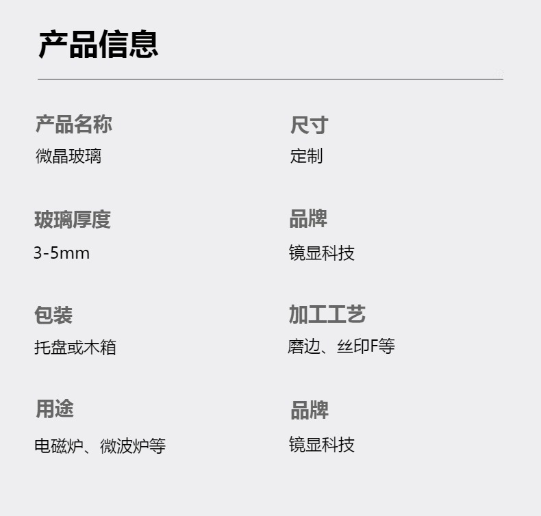 Varios tamaños de serigrafía de borde de molienda resistente a altas temperaturas horno electromagnético negro panel de vidrio microcristalino
