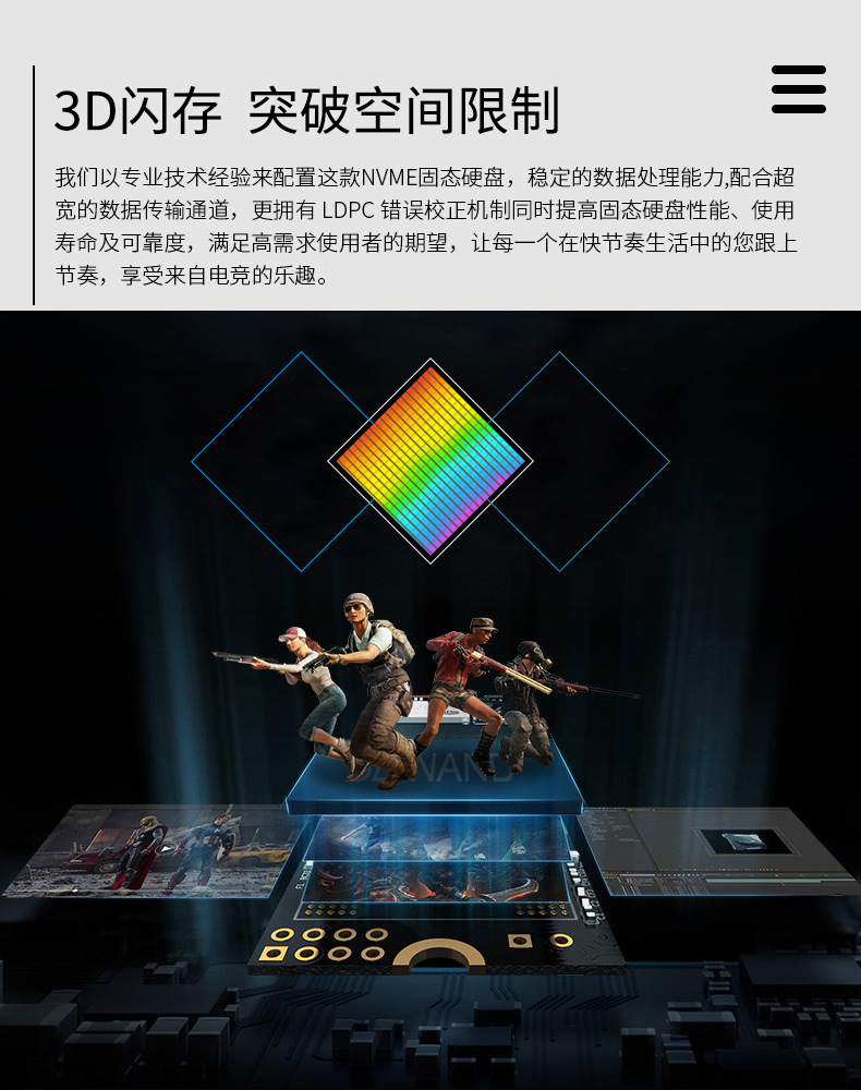 | Arquitectura de memoria flash | Unidad de tres niveles TLC |