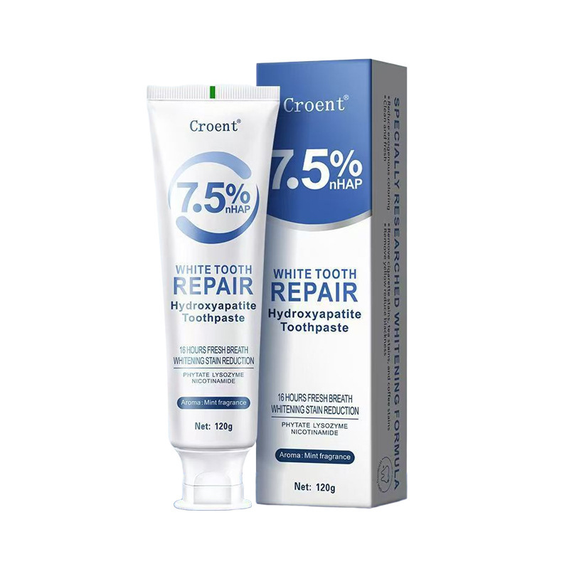Ventas transfronterizas calientes 7,5% nano hidroxiapatita pasta de dientes reparación esmalte blanqueamiento de eliminación de manchas 120g fábrica mayorista