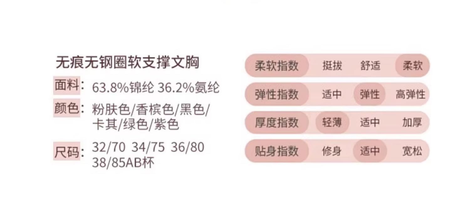 | Talla | S (para 32 / 70ABC), M (para 34 / 75ABC), L (para 36 / 80ABC), XL (para 38 / 85 ABC) |