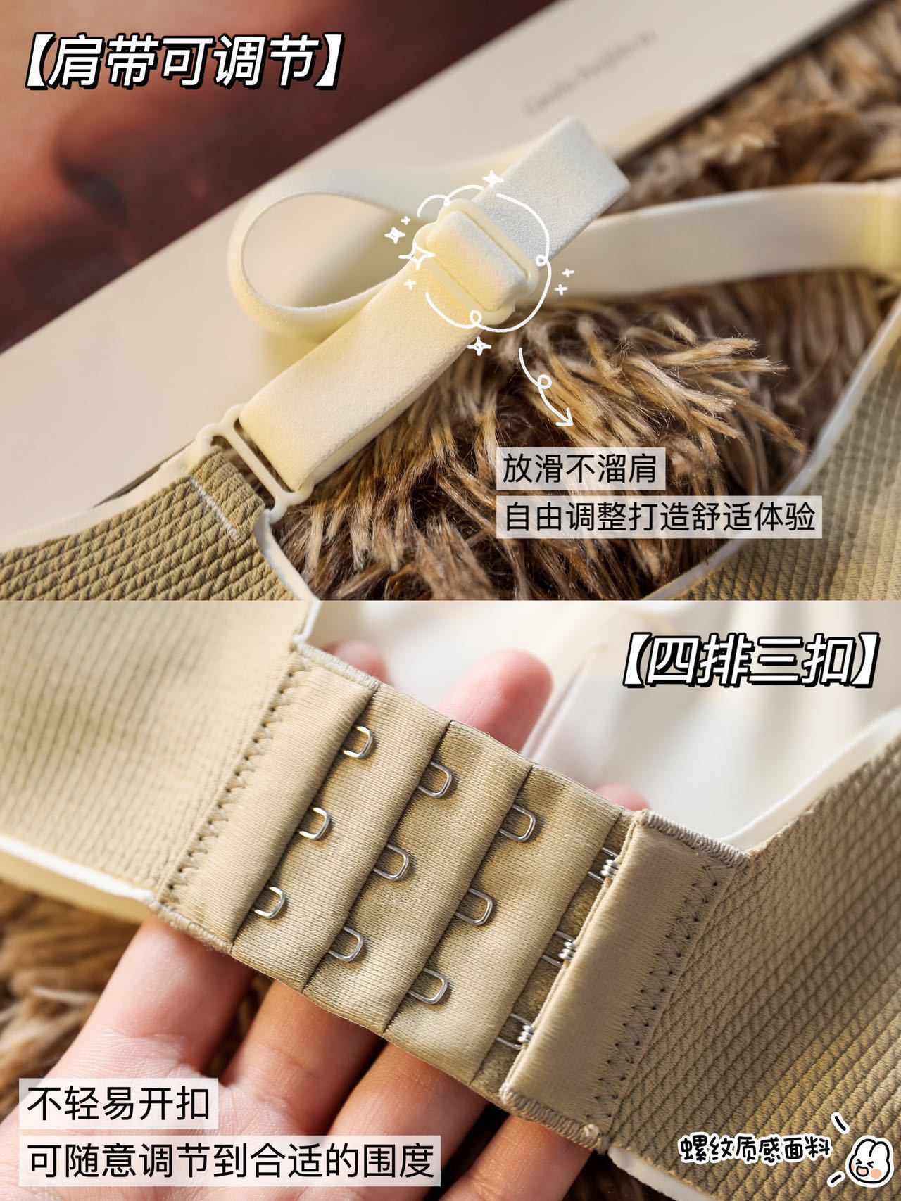 | Función | Cohesión, soporte superior, comodidad |