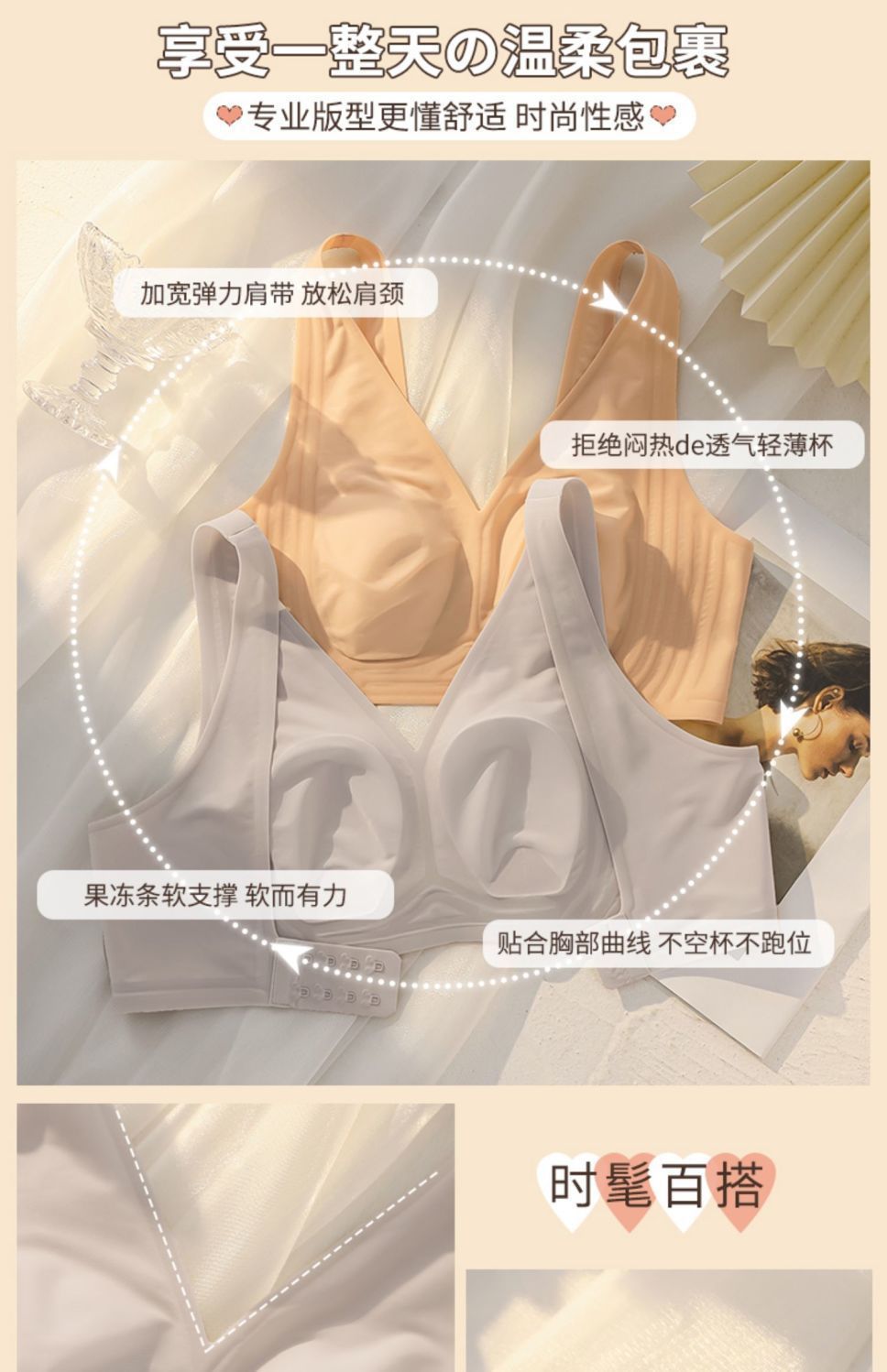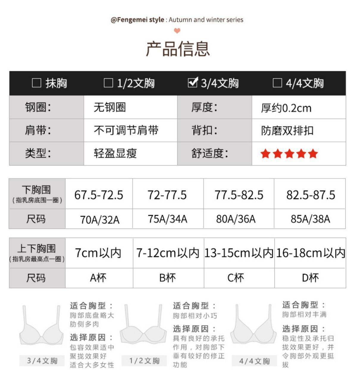 | Función | Cohesión, sin marcas, soporte superior, cómodo, sujetador, pecho grande y pequeño |