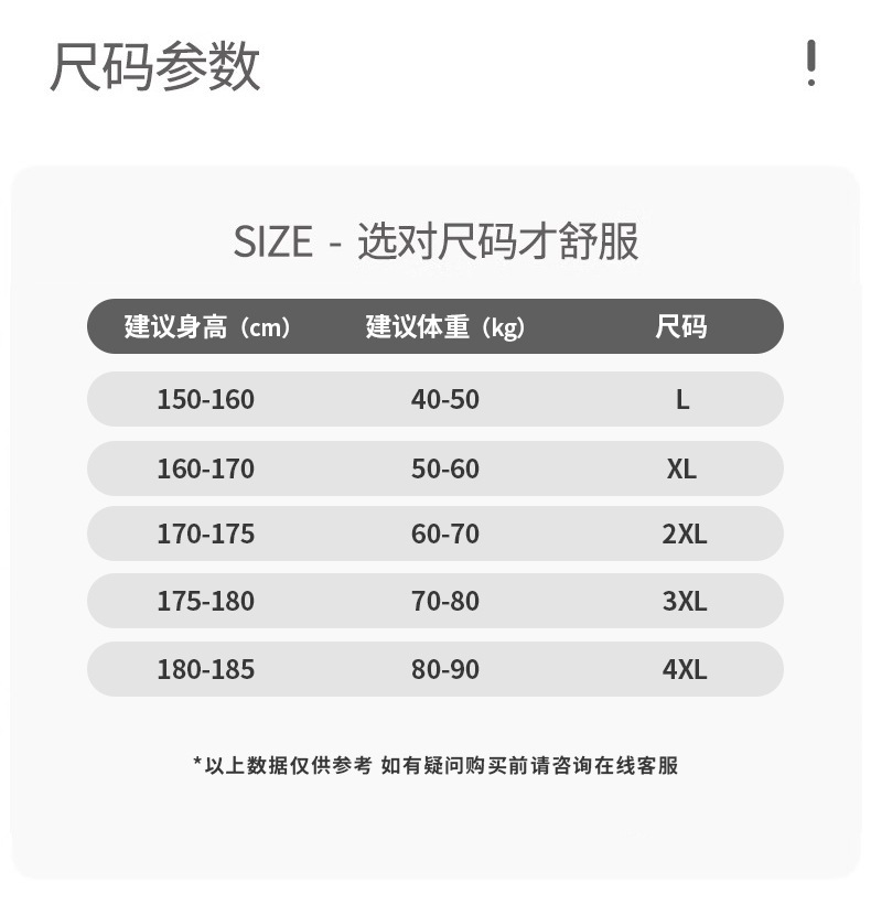 | Talla | L [se recomienda 80 - 100 kg], XL [se recomienda 100 - 120 kg], 2xl [se recomienda 120 - 140 kg], 3xl [se recomienda 140 - 160 kg], 4xl [se recomienda 160 - 180 kg] |