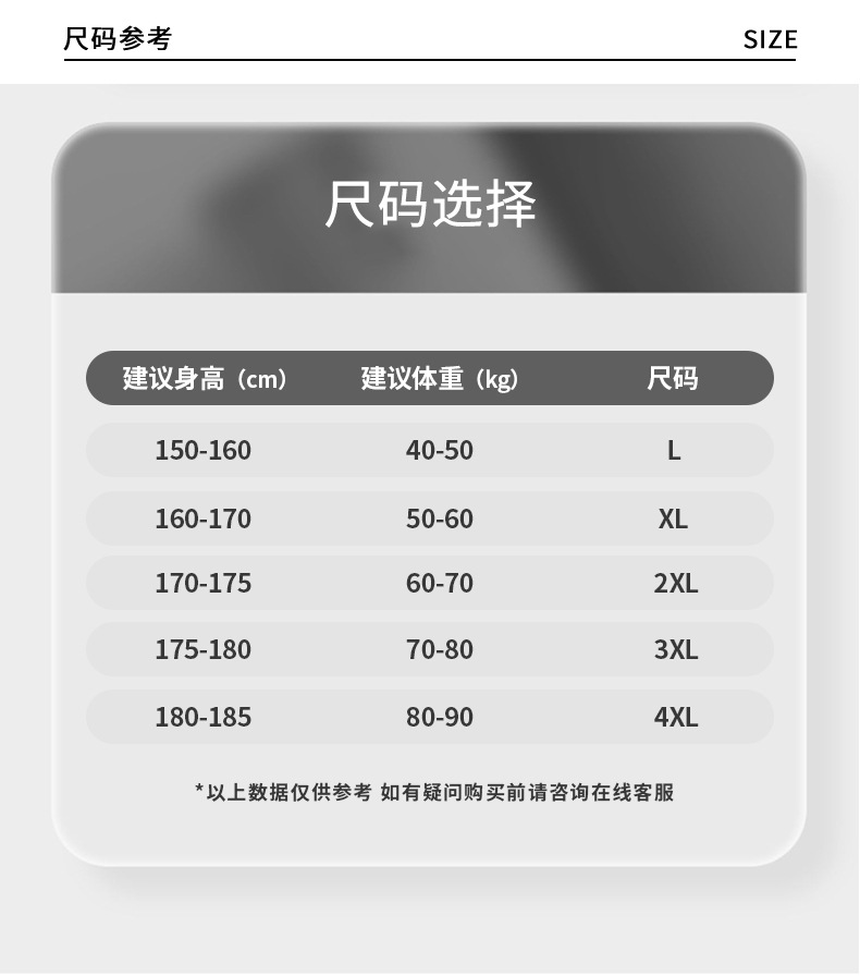 | Talla | L [se recomienda 80 - 100 kg], XL [se recomienda 100 - 120 kg], 2xl [se recomienda 120 - 140 kg], 3xl [se recomienda 140 - 160 kg], 4xl [se recomienda 160 - 180 kg] |
