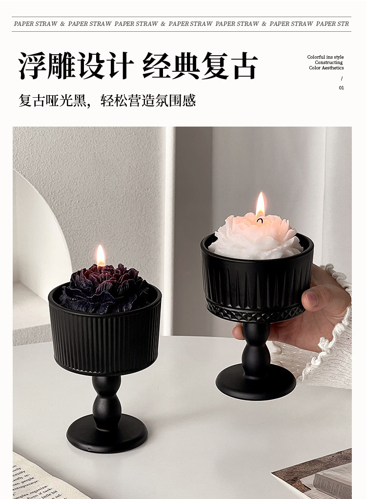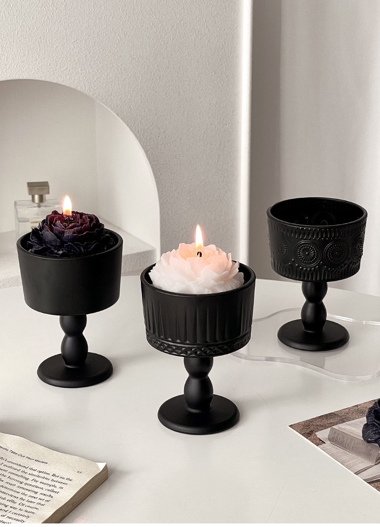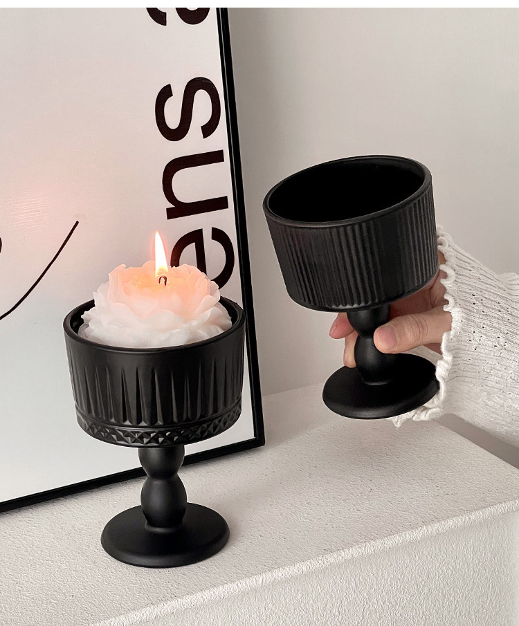 Francés retro negro esmaltado candelabro casero de alto nivel sensación de base de vidrio de incienso atmósfera decoración