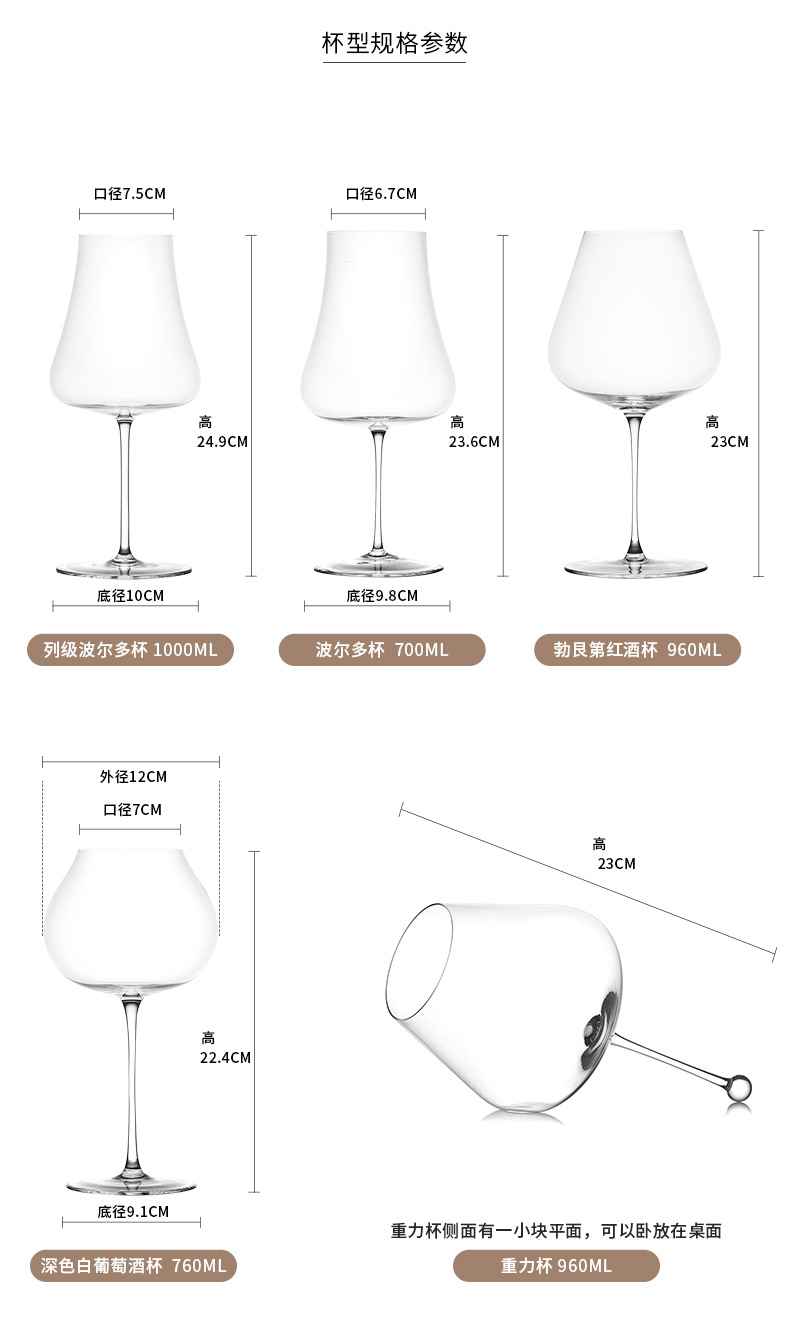 | Color | Copa de vino tinto de Burdeos 700ml (individual), Copa de vino tinto de Burdeos 1000ml (individual), Copa de vino oscuro 760ml (individual), Copa de vino tinto de Borgoña 960ml (individual), Copa de gravedad 960ml (individual), Copa de vino oscuro 760ml (individual) |