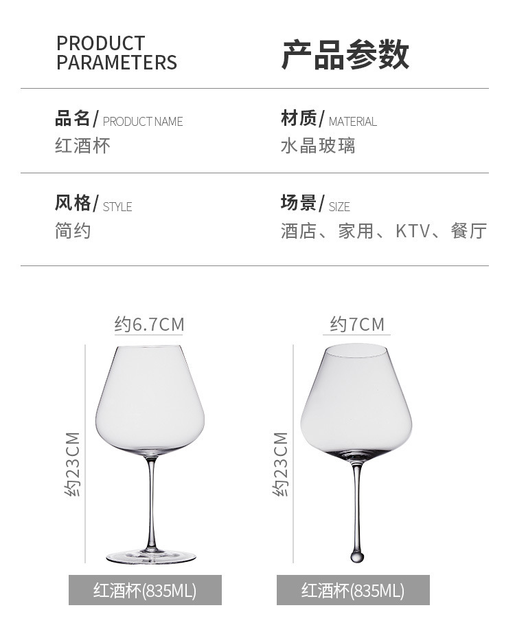 Taza de vino de cristal, taza de borgoña, taza de gravedad, taza de vientre, taza de cristal ultrafina hecha a mano
