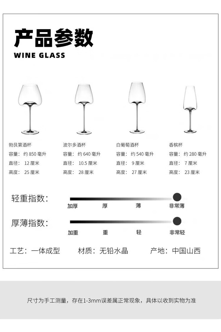 | Color | Vaso de Burdeos 600ml 1, copa de Borgoña 750ml 1, copa de vino blanco 500ml 1, copa de champán 230ml 1 |