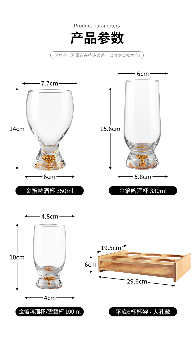 | Color | Copa de cerveza de lámina de oro 350 ml, Copa de cerveza de lámina de oro 330ml |