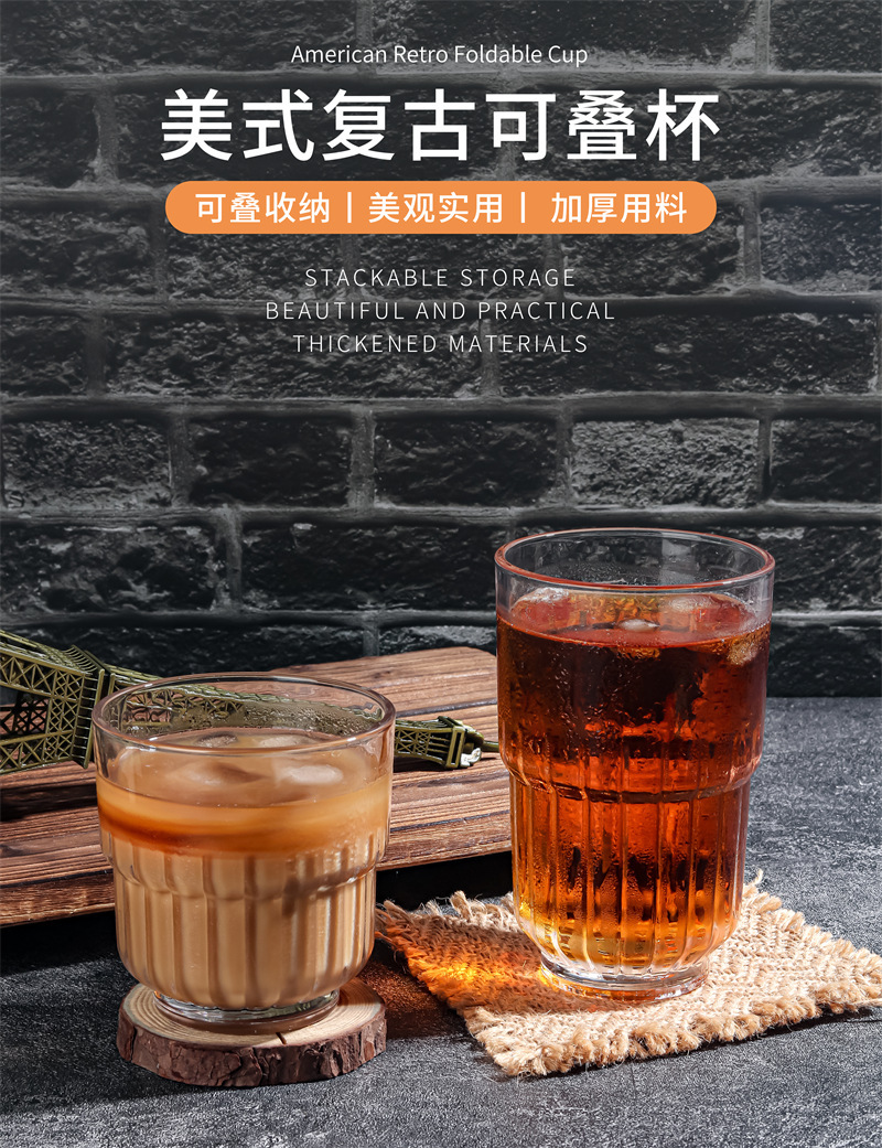 Taza laminada transparente corta 266ML,Alta taza apilada transparente 355ML