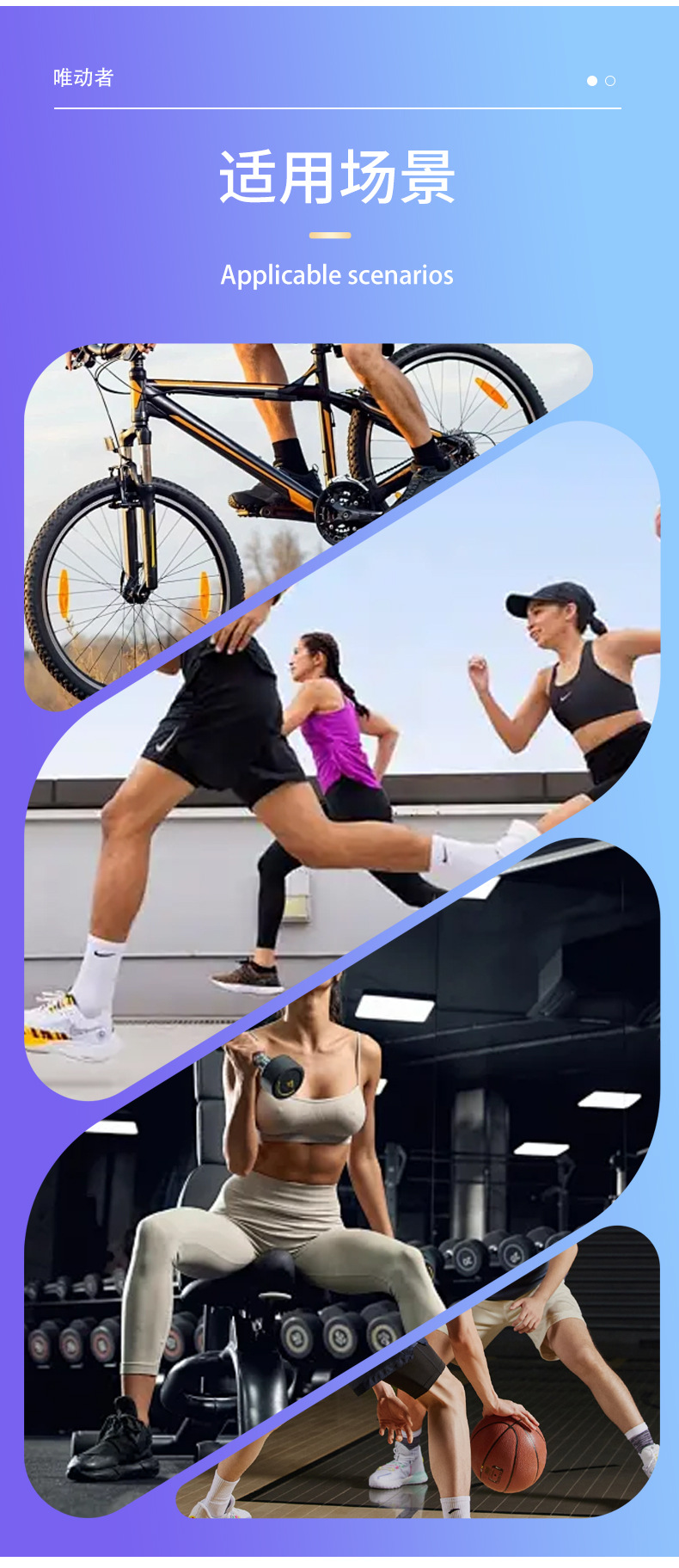 | Escenarios aplicables | Correr, Equipos de Fitness, Masaje de Salud, Fitness, Tendencias Deportivas, Ciclismo, Desafío Extremo, Camping de senderismo |
