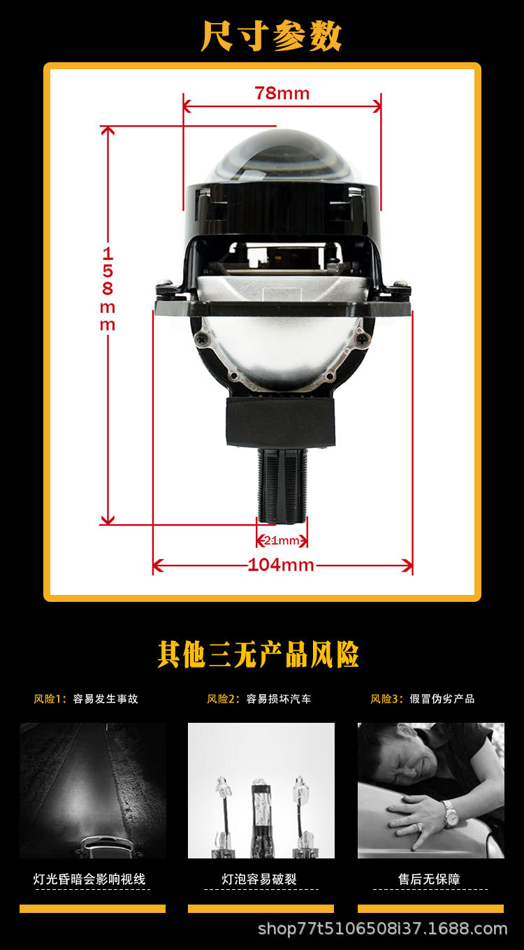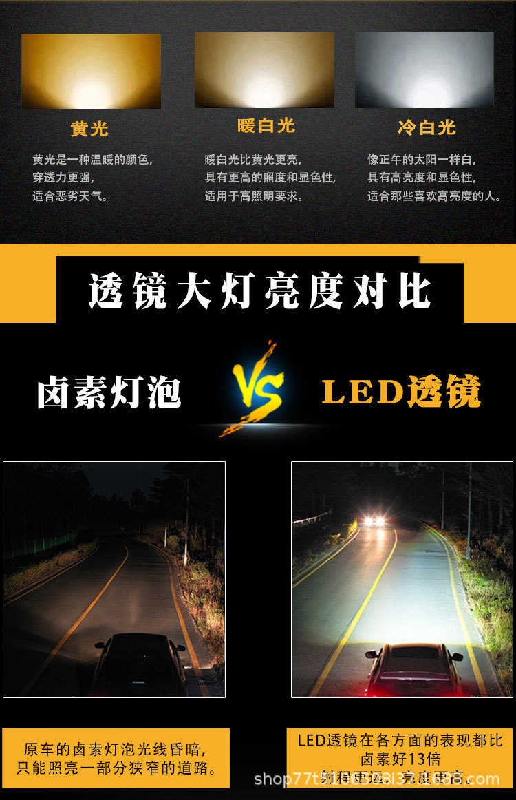 Accesorios de faro LED para automóviles 3 pulgadas lente de luz dual 65W de alta potencia doble copa de luz tipo láser 12V modificación general