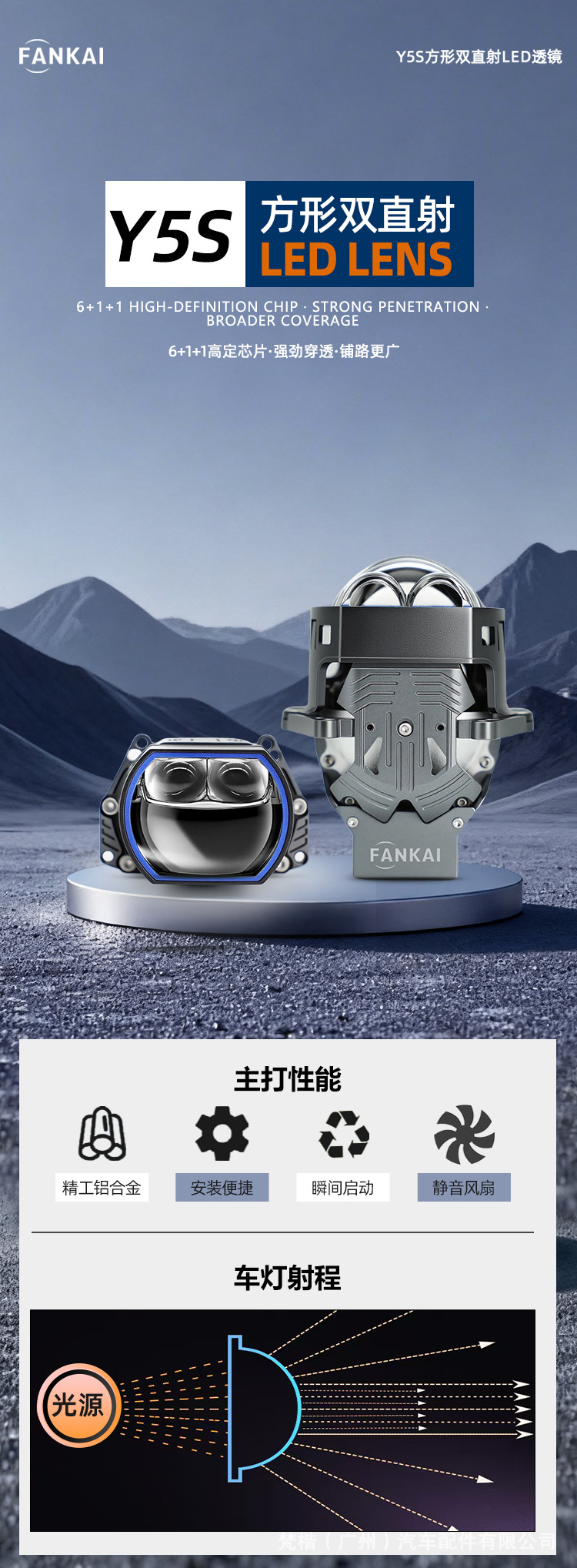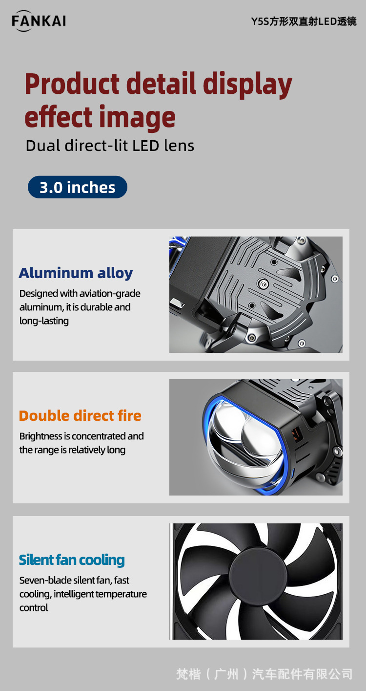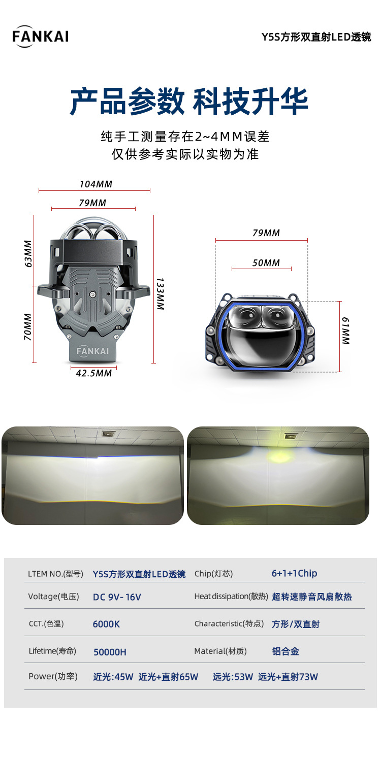 | Especificaciones del producto | Y5S cuadrado doble lente LED directa conductor izquierdo solo |