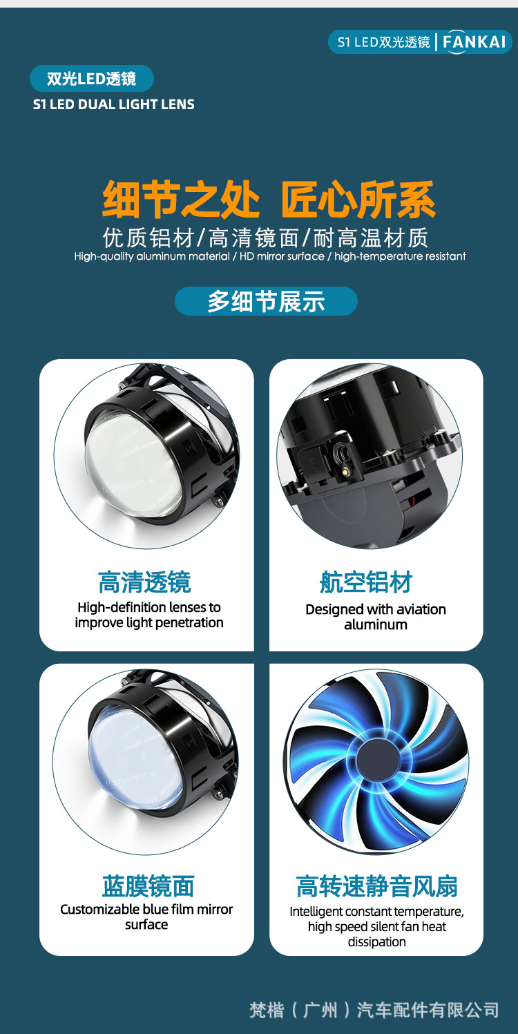 | Especificaciones del producto | Lente de doble luz S1 LED para la conducción izquierda, lente de doble luz S1 LED para la conducción derecha |