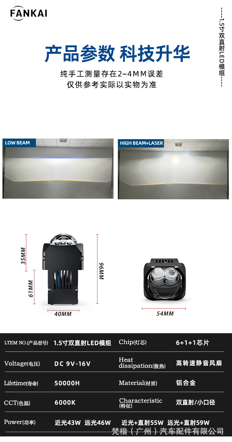 | Número de accesorios | 1.5 Módulo LED directo dual pulgada |