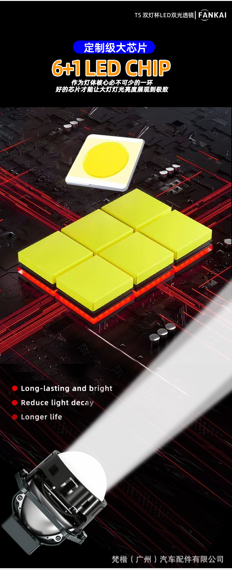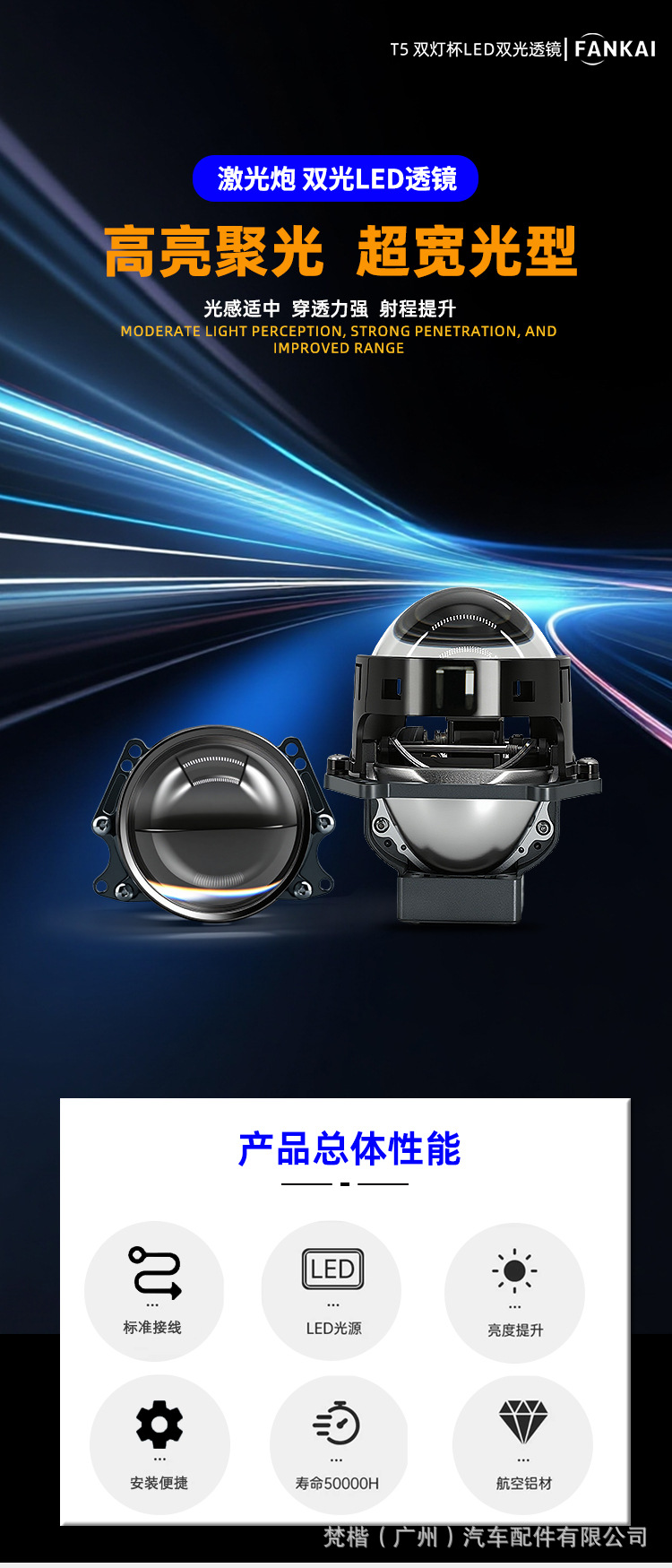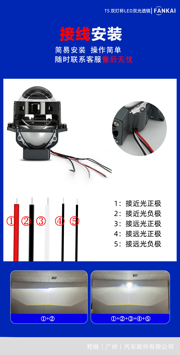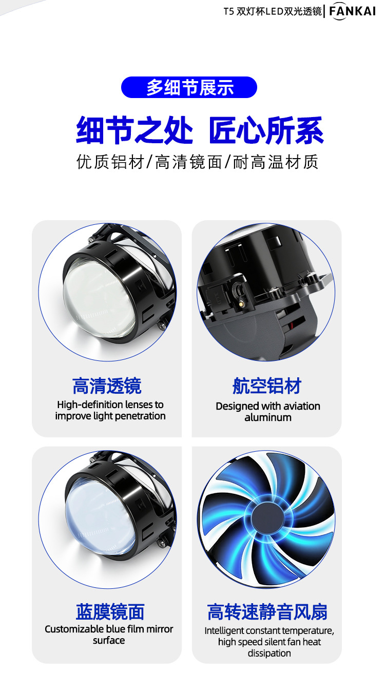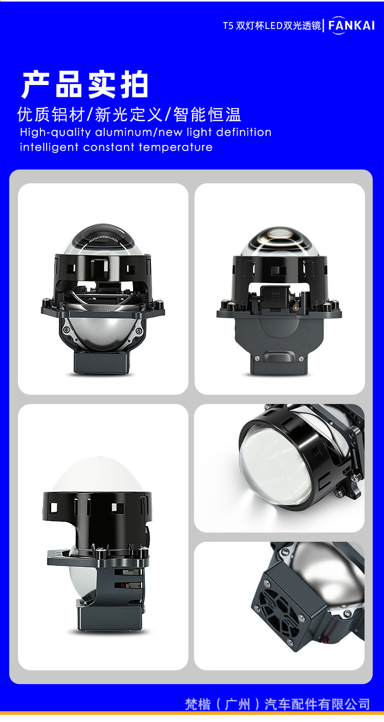 | Especificaciones del producto | Lente LED de doble copa T5 para la conducción izquierda, lente LED de doble copa T5 para la conducción derecha |