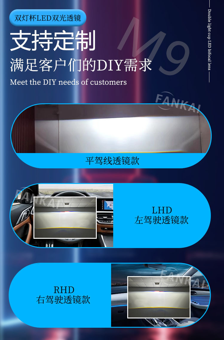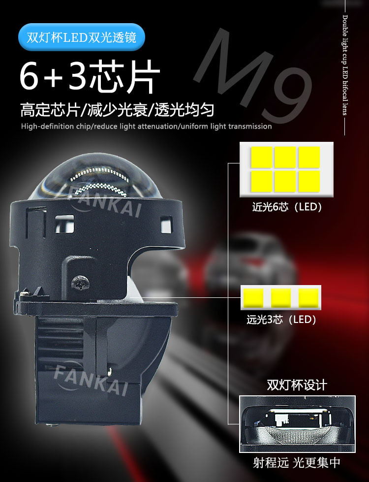 | Especificaciones del producto | La lente de doble Luz LED m9 conduce a la izquierda y la lente de doble Luz LED m9 conduce a la derecha. |