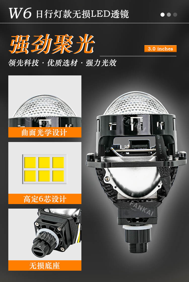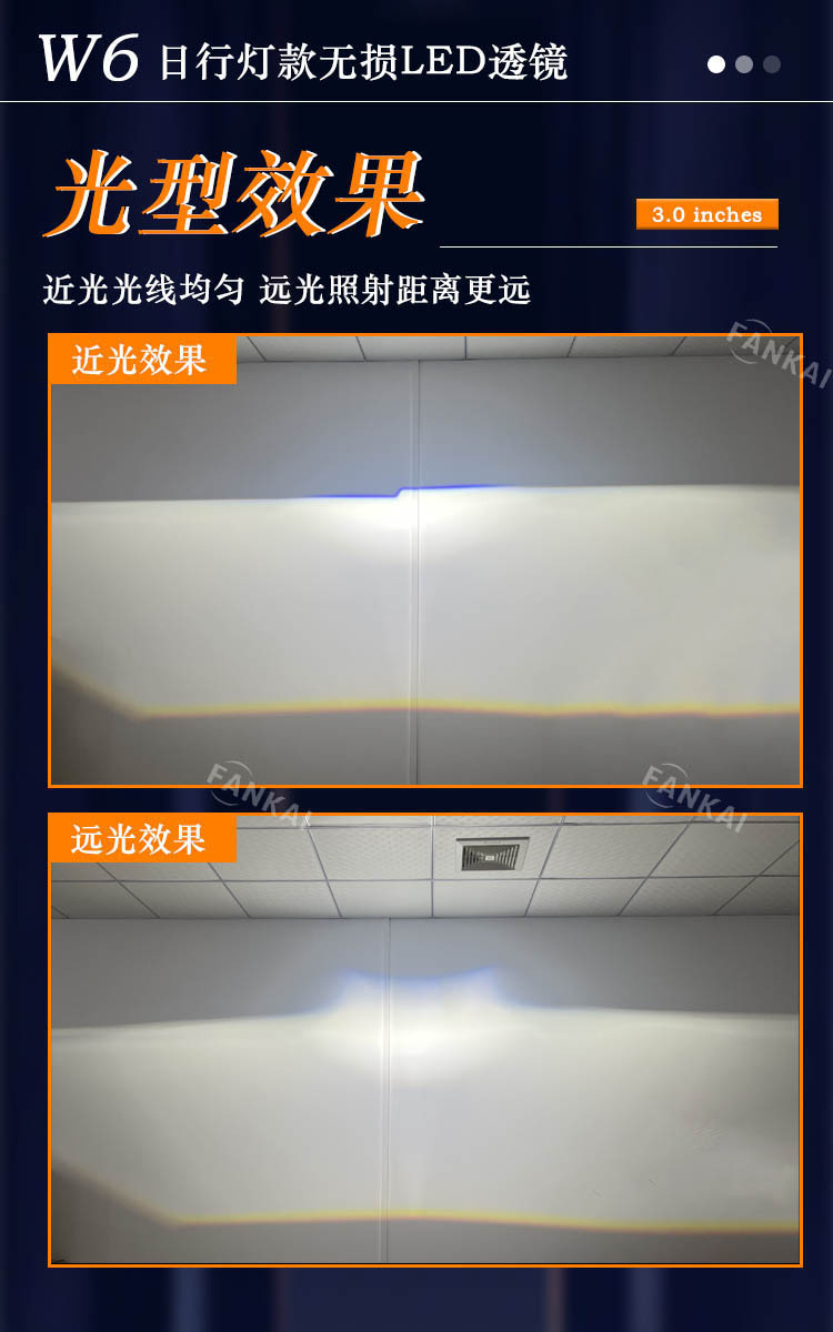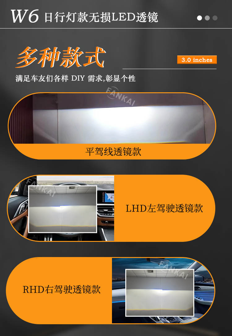 | Especificaciones del producto | La lente LED de la luz de viaje W6 conduce a la izquierda, y la lente LED de la luz de viaje W6 conduce a la derecha. |