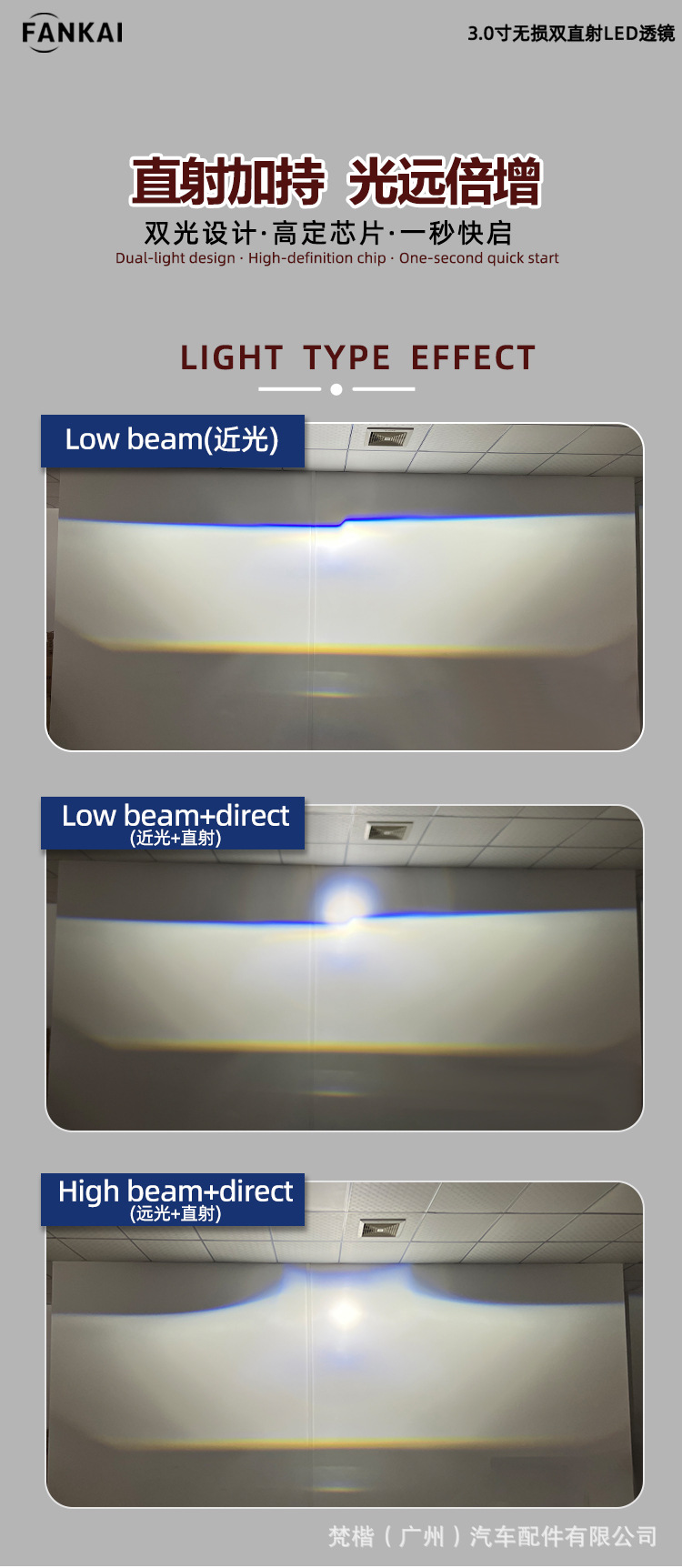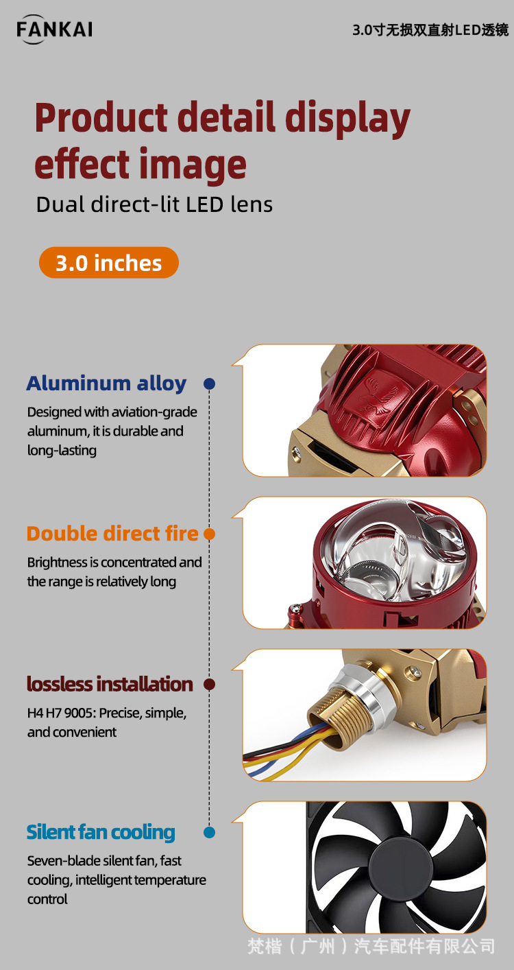 | Número de artículo | Lente LED de doble disparo directo sin pérdida de 3 pulgadas |