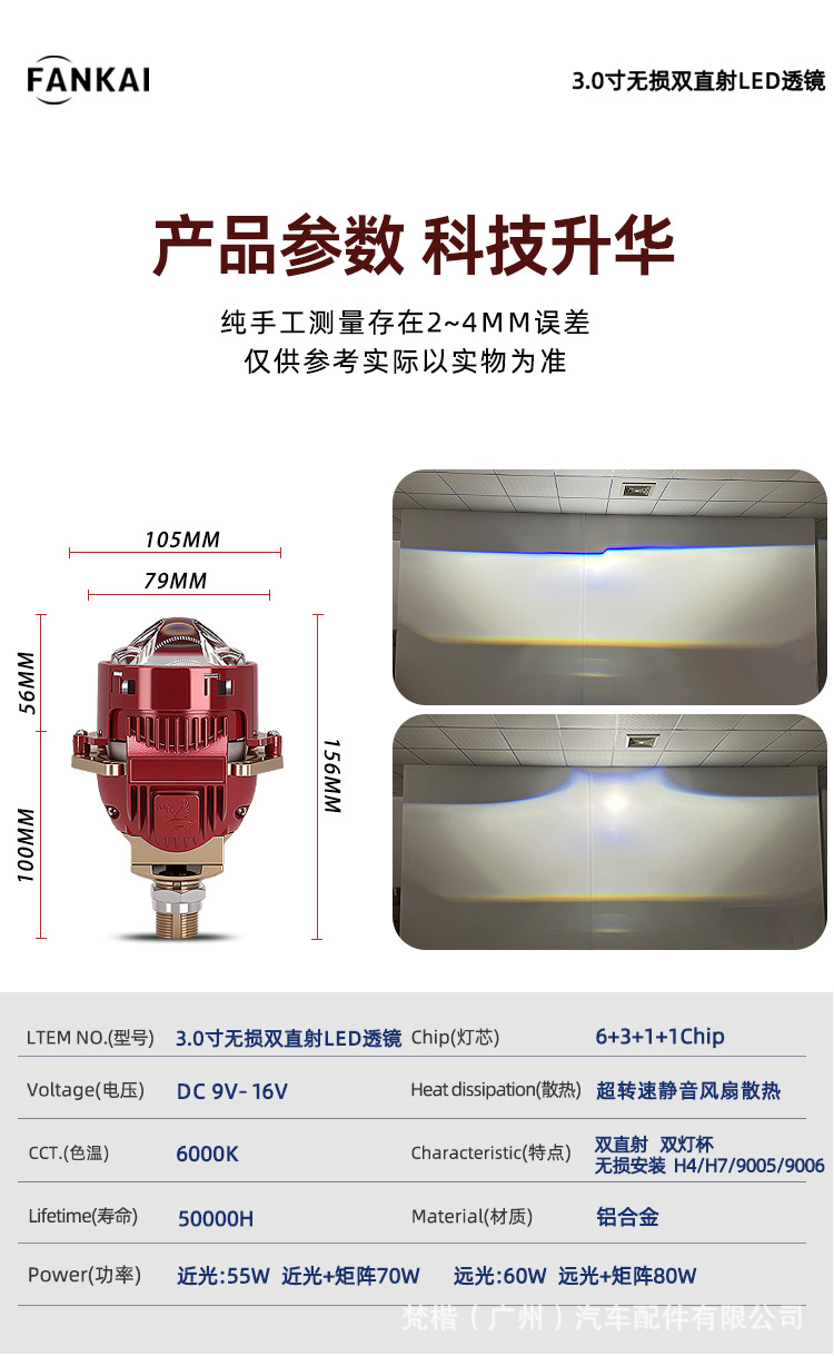 | Especificaciones del producto | Lente LED doble directa sin daños de 3 pulgadas en una sola unidad a la izquierda |