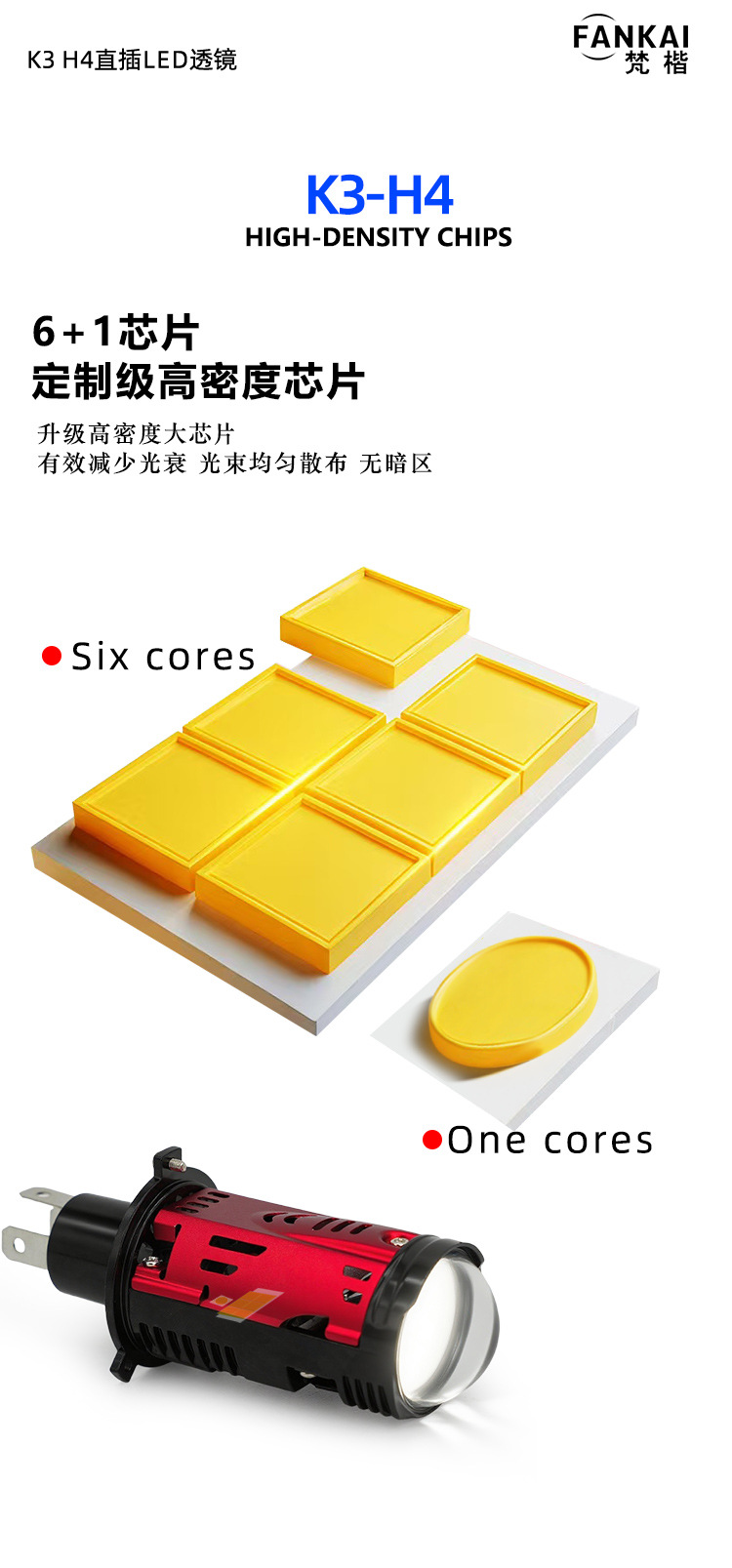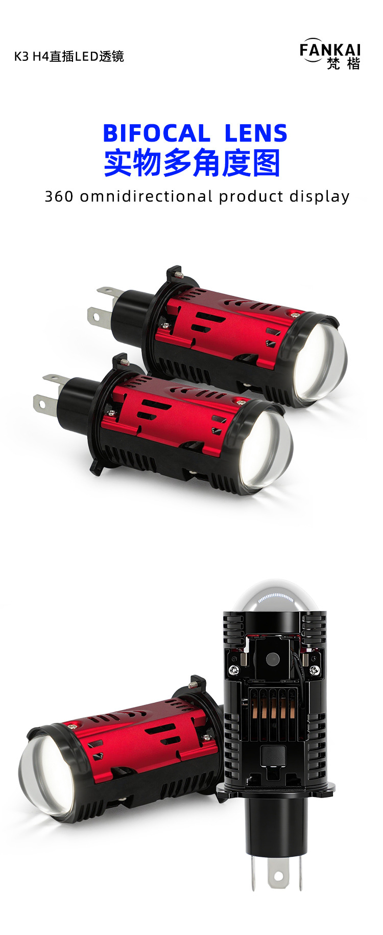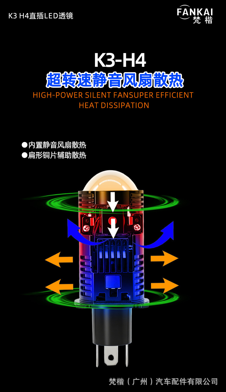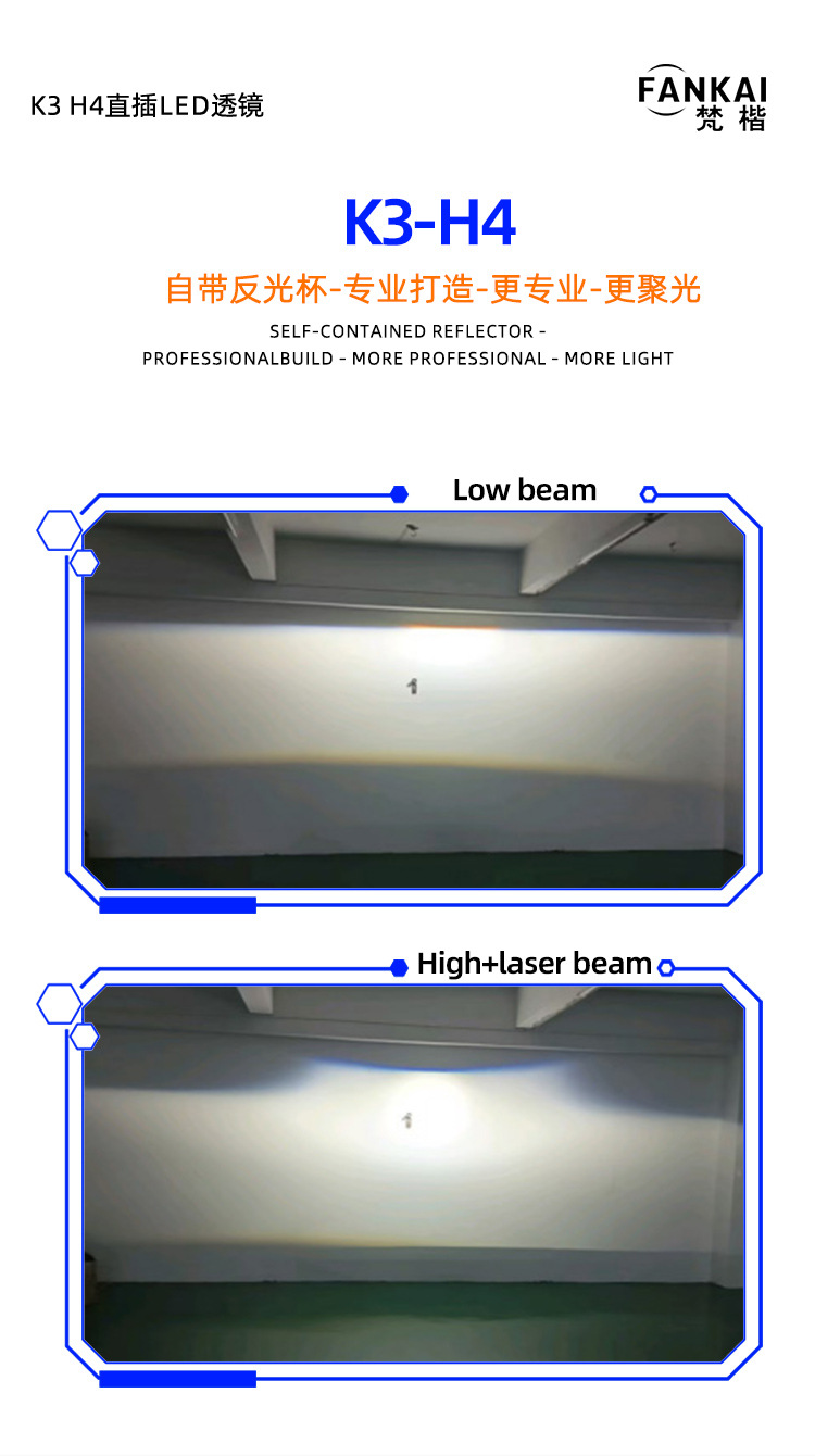 | Número de artículo | Lentes LED en línea K3 H4 |