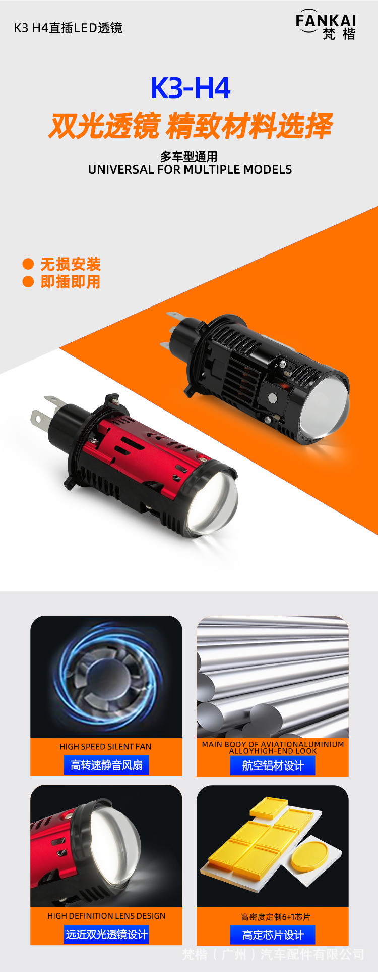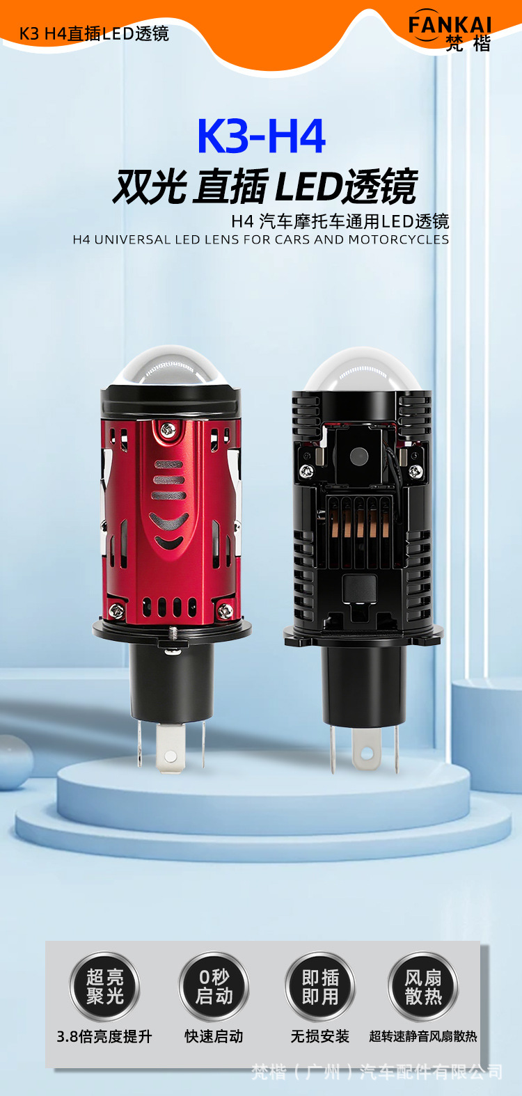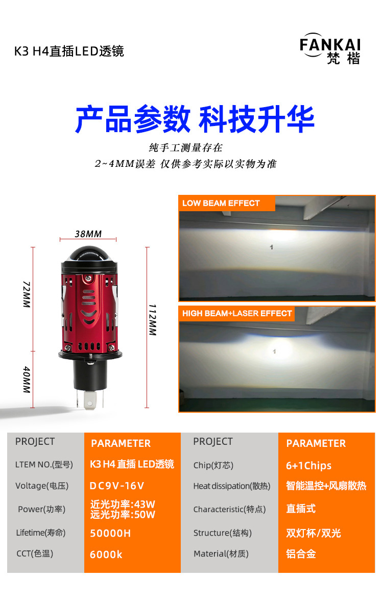 | Número de artículo | Lentes LED en línea K3 H4 |