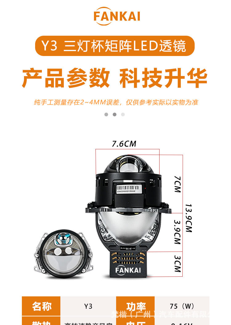 | Especificaciones del producto | Y3 tres lentes LED directos para conducir a la izquierda,Y3 tres lentes LED directos para conducir a la derecha |