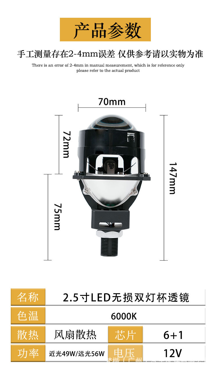 | Color | Lente LED sin pérdida de Copa de Doble luz de 2,5 pulgadas 6 + 1 |