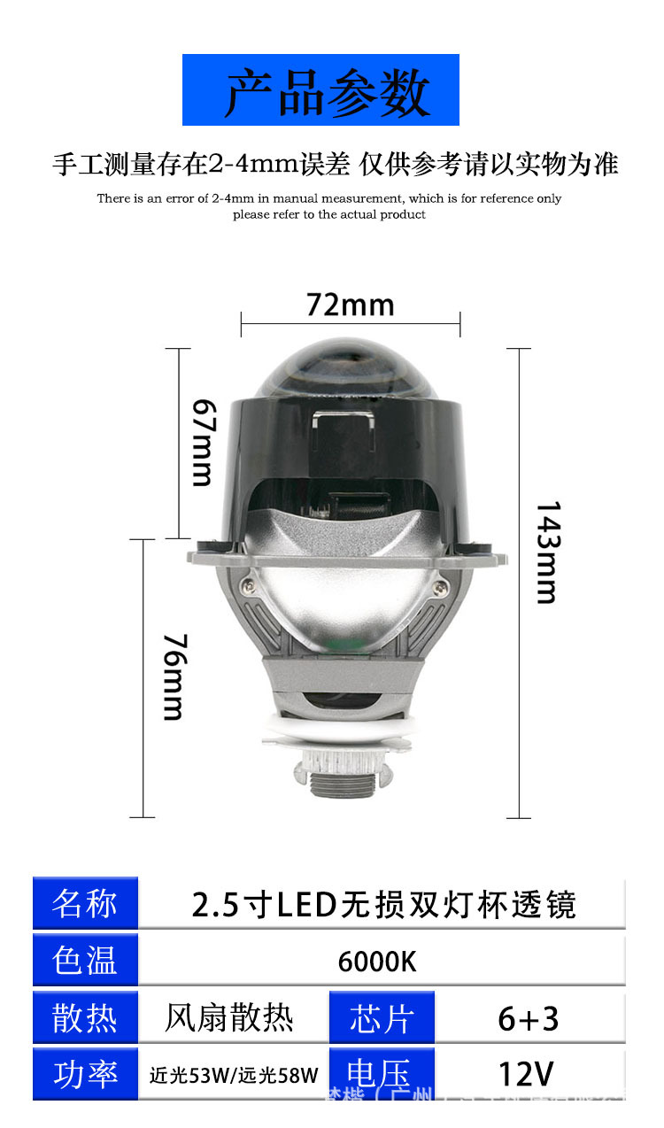 | Número de artículo | Lente LED sin pérdida de Copa de Doble luz de 2,5 pulgadas |