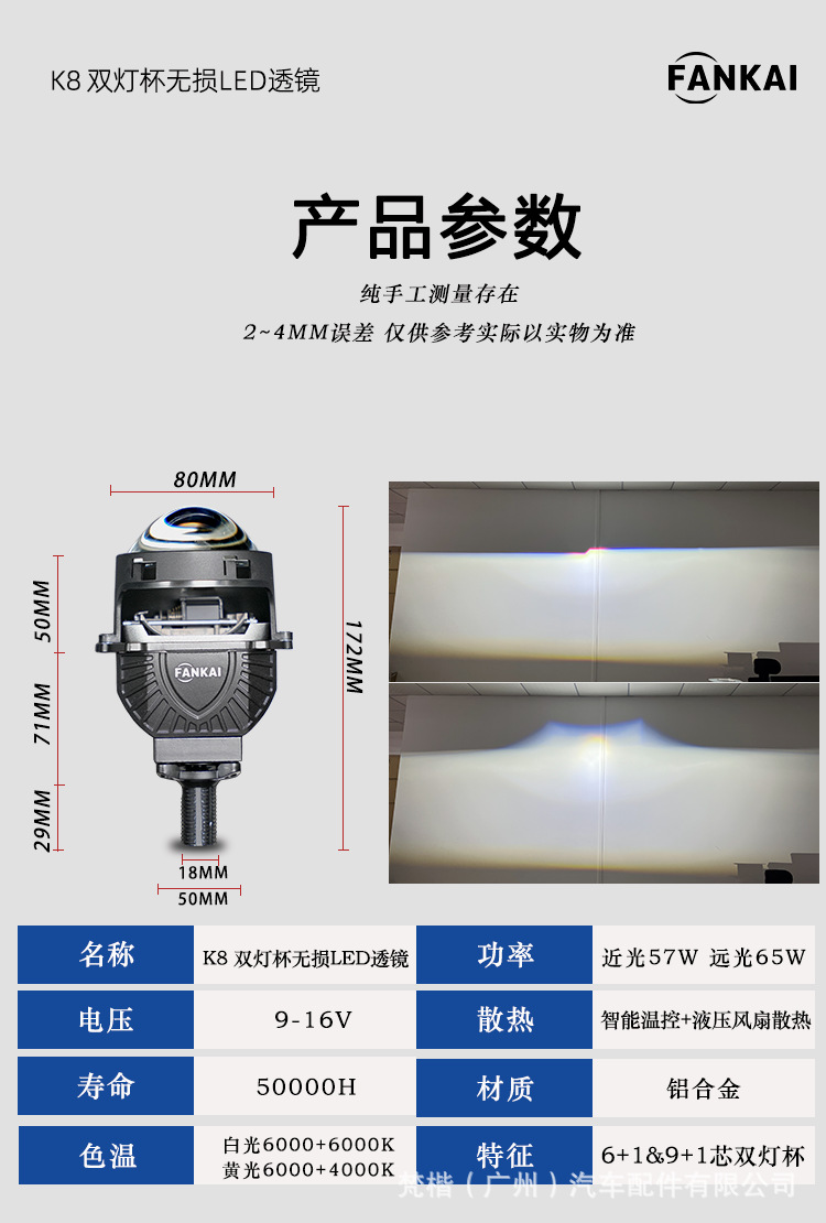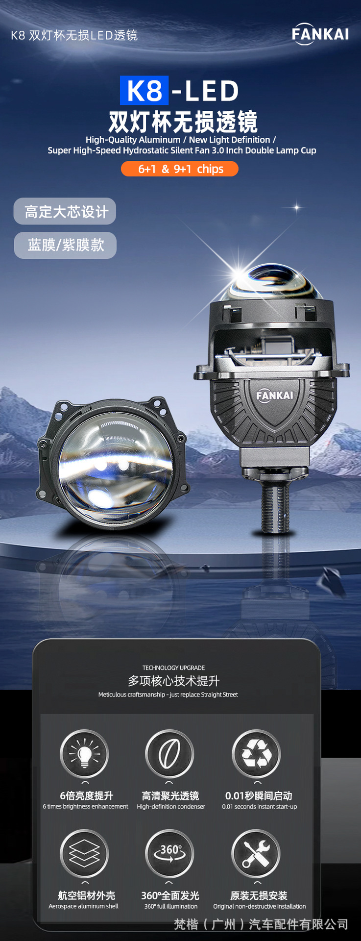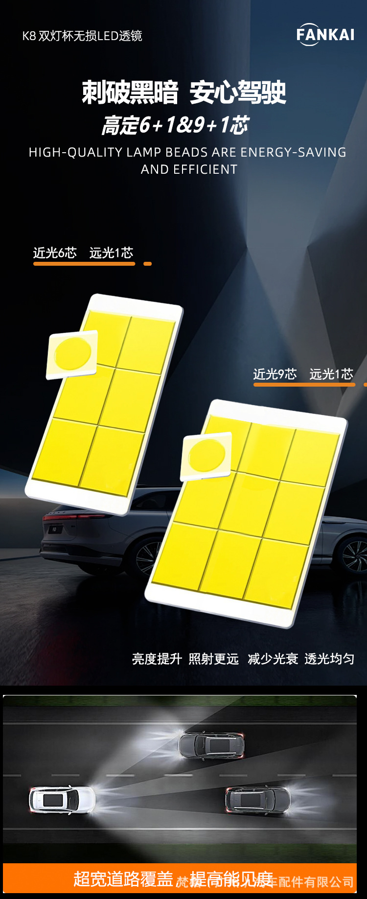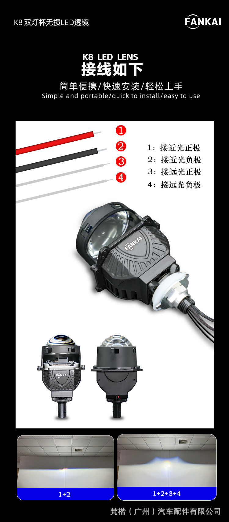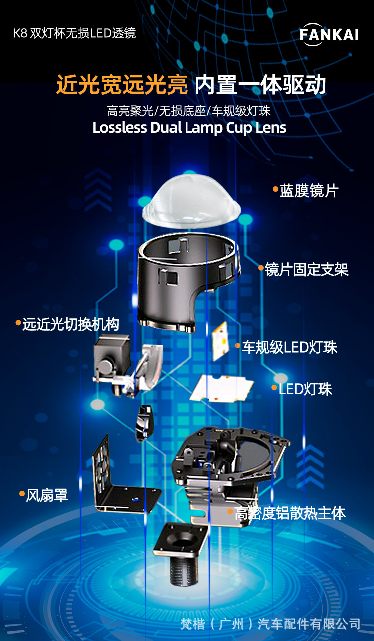 | Número de accesorios | Lente LED de la taza de Doble luz K8 |