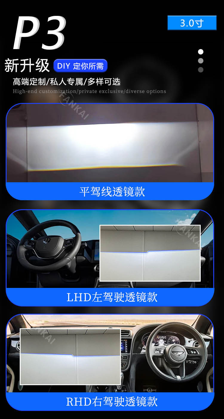 | Especificaciones del producto | P3 triple lente LED directa para la conducción izquierda, P3 triple lente LED directa para la conducción derecha |