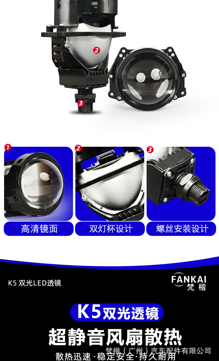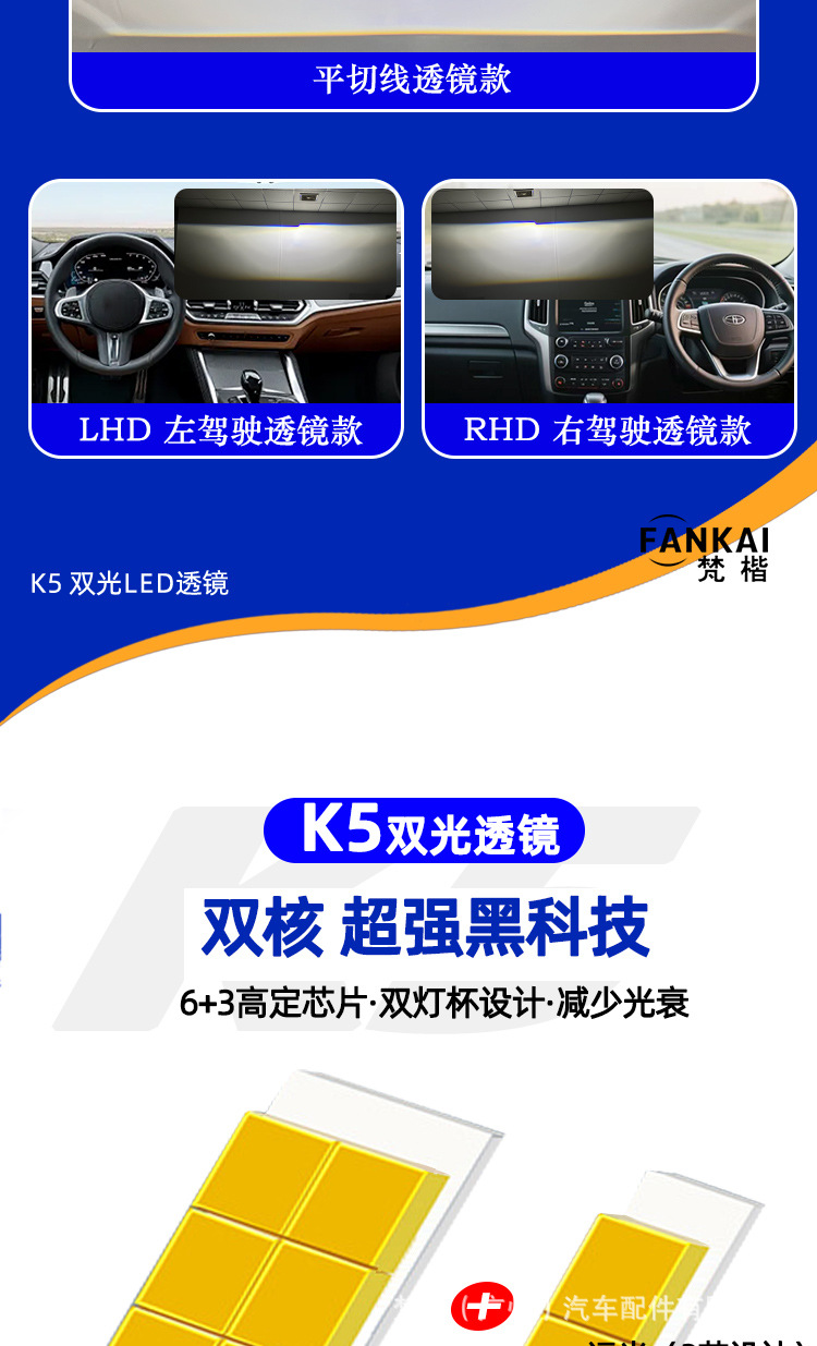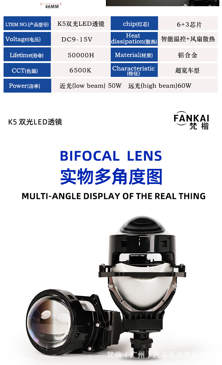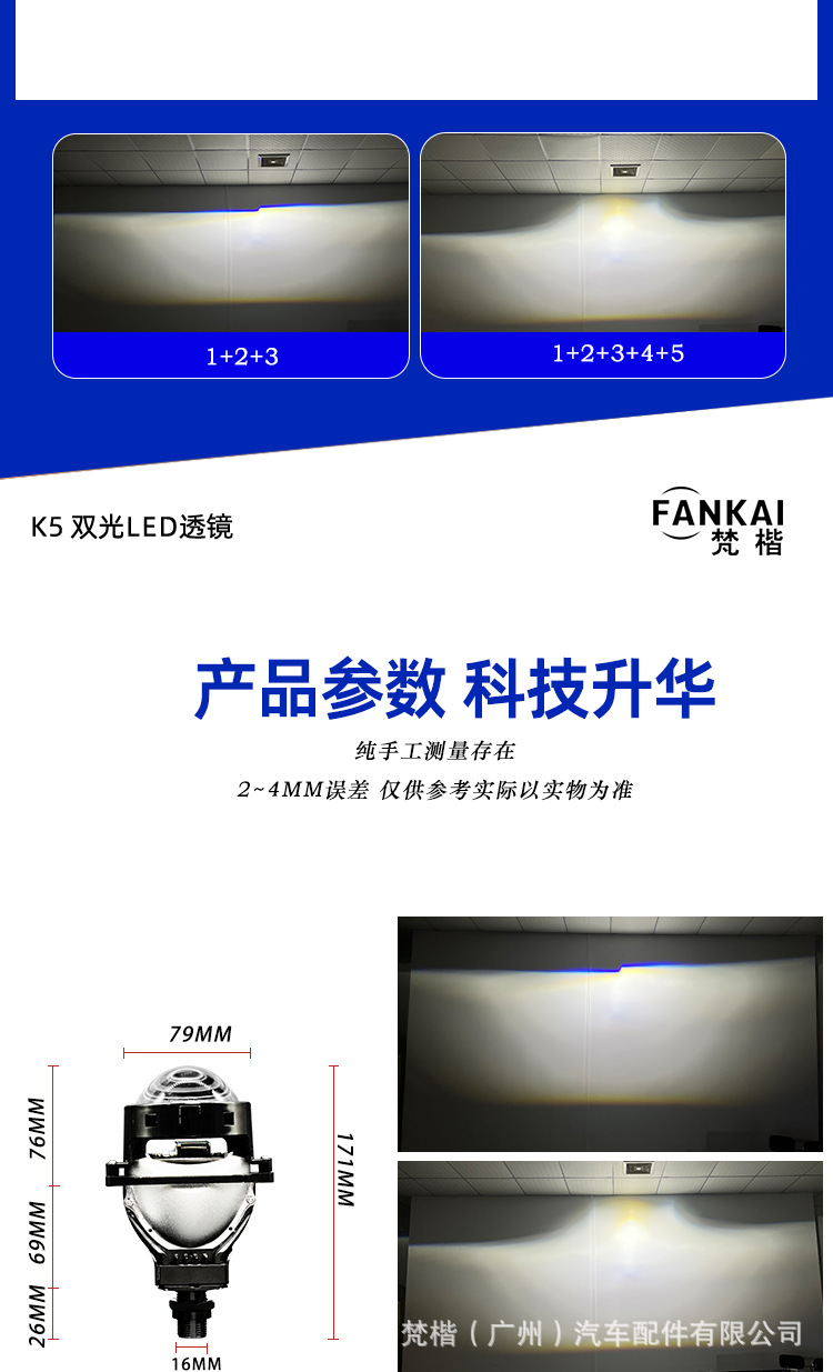 | Especificaciones del producto | Lente bifocal LED K5 volante a la izquierda HD simple,Lente bifocal LED K5 volante a la derecha HD simple |