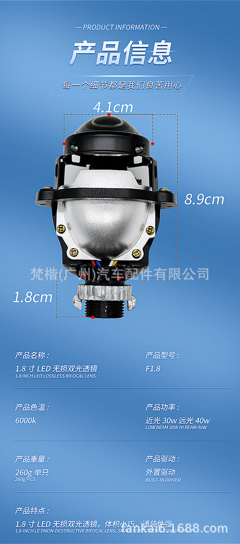 | Especificaciones del producto | Lente bifocal led de 1,8 pulgadas para conducir a la izquierda,Lente led bifocal de 1,8 pulgadas para conducir a la derecha |