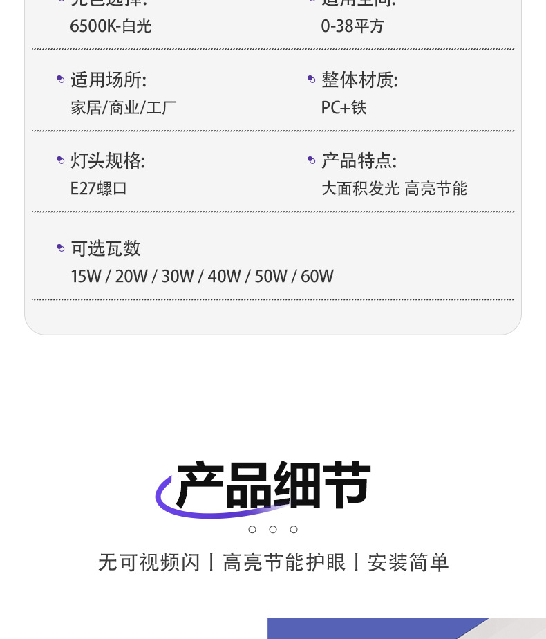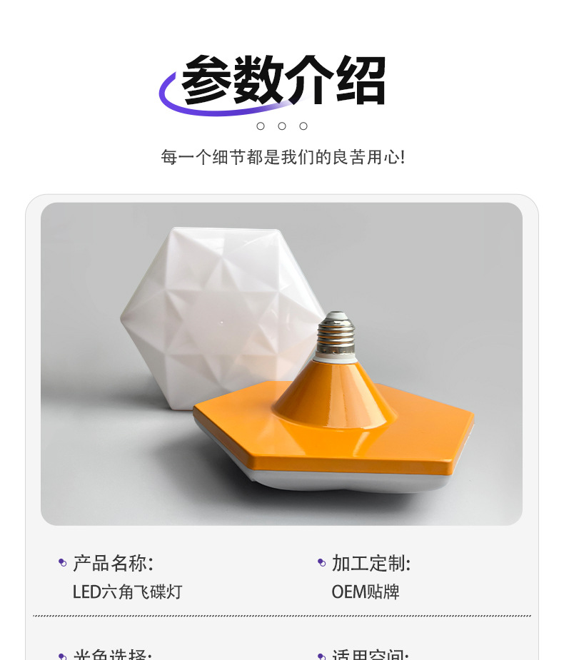 | Potencia | Lámpara hexagonal de 15w con caja de color, lámpara hexagonal de 20w con caja de color, lámpara hexagonal de 30w con caja de color, lámpara hexagonal de 40w con caja de color, lámpara hexagonal de 50w con caja de color, lámpara hexagonal de 60W con caja de color |