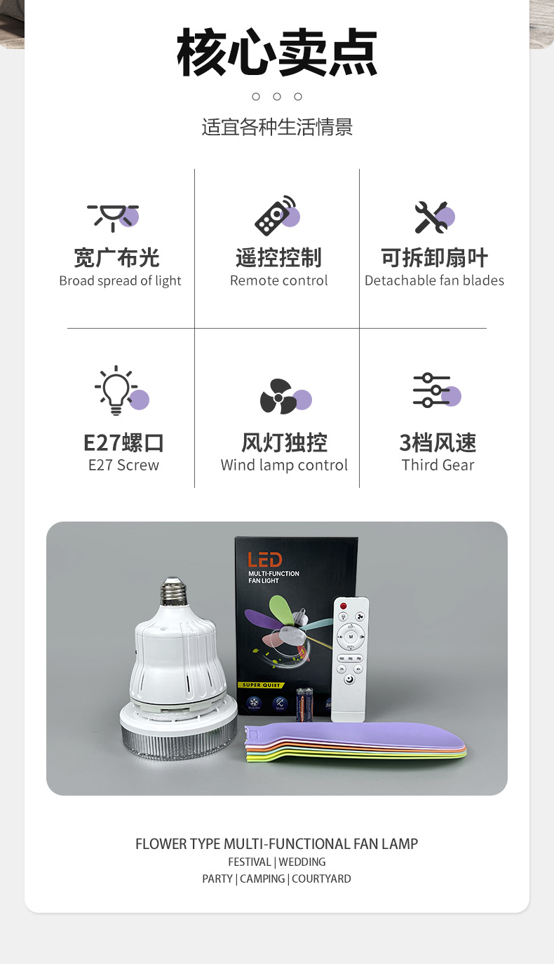 | Tipo de luz del ventilador | Lámpara de ventilador de hoja fija |