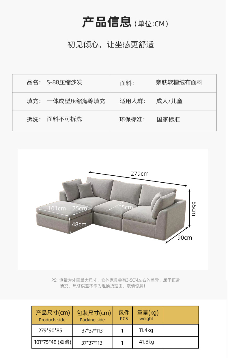 | Número de artículo | Sofá comprimido S - 88: |