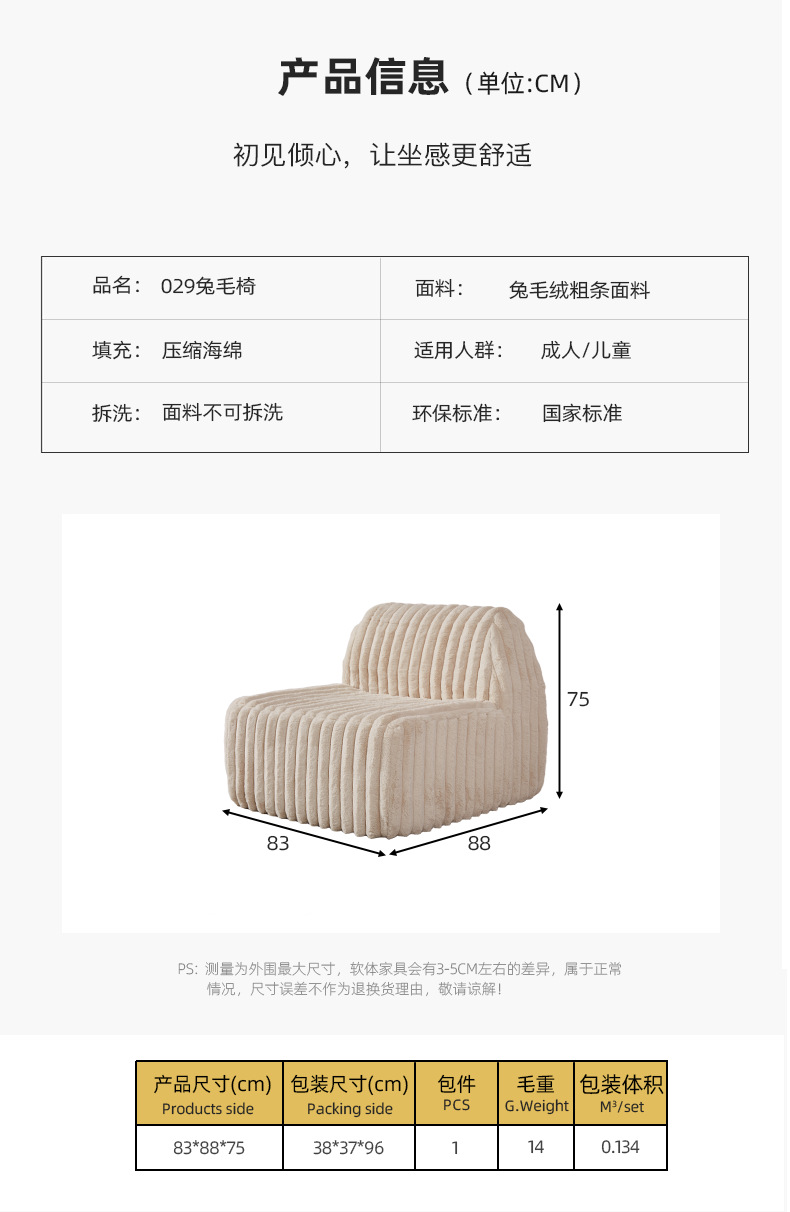 | Número de artículo | 029 silla de pelo de conejo |