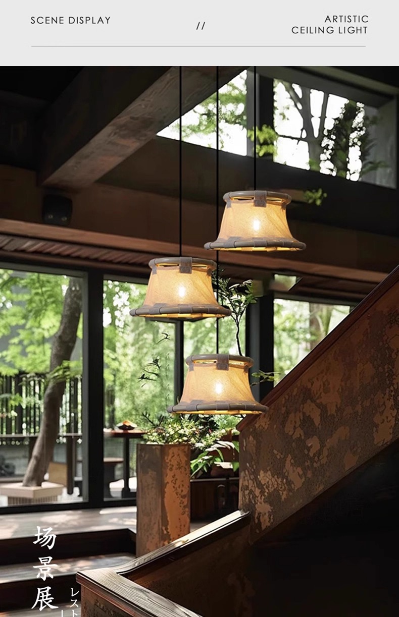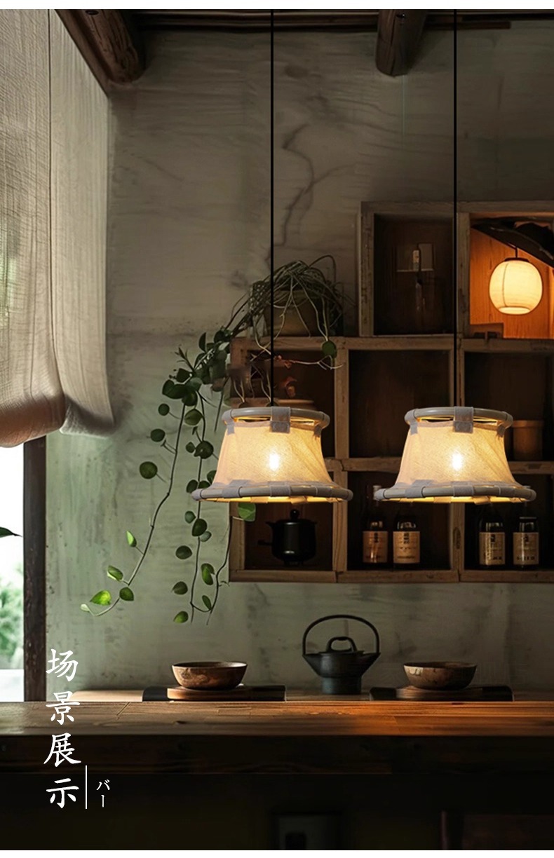 Araña de bambú de estilo japonés, restaurante de olla caliente, restaurante, linterna de bambú, casa de familia, bar, salón de té, arte de bambú chino, lámparas tejidas