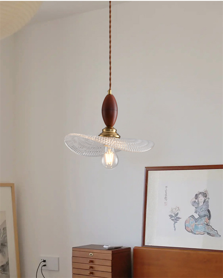 Colgante pequeño de sala de estar de dormitorio medieval francés nogal retro candelabro de impresión de tela de alta calidad de color Nanyang