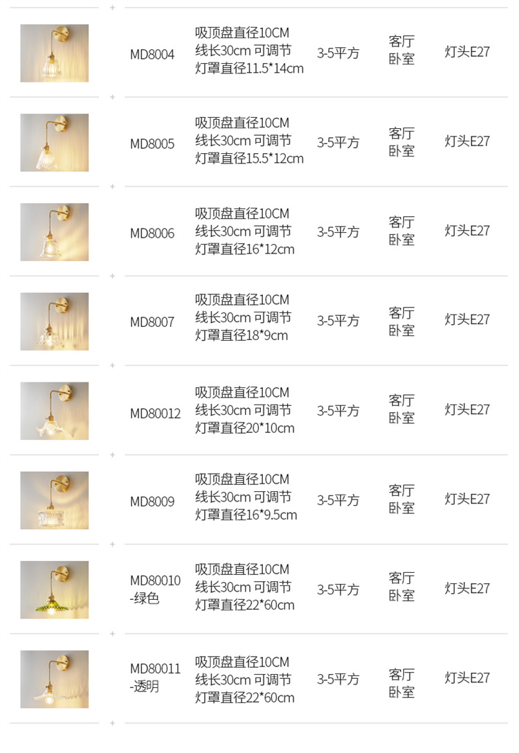 | Color de luz | MD8001,MD8002,MD8003,MD8004,MD8005,MD8006 (en inglés),MD8007,MD8008,MD8009,MD80010-Green,MD80011-transparent,MD80012,MD80013,MD80014,MD80015 |