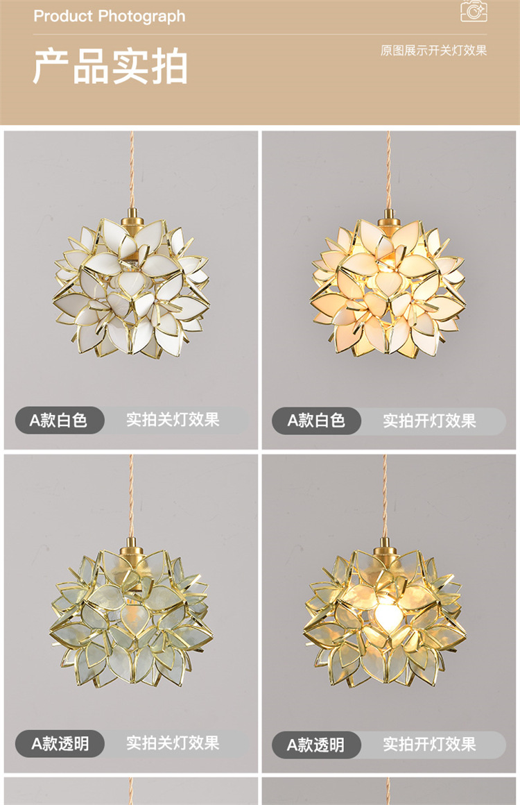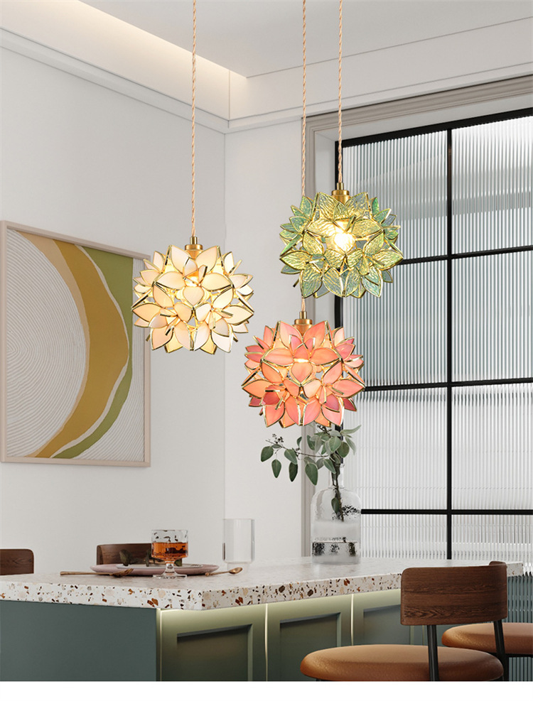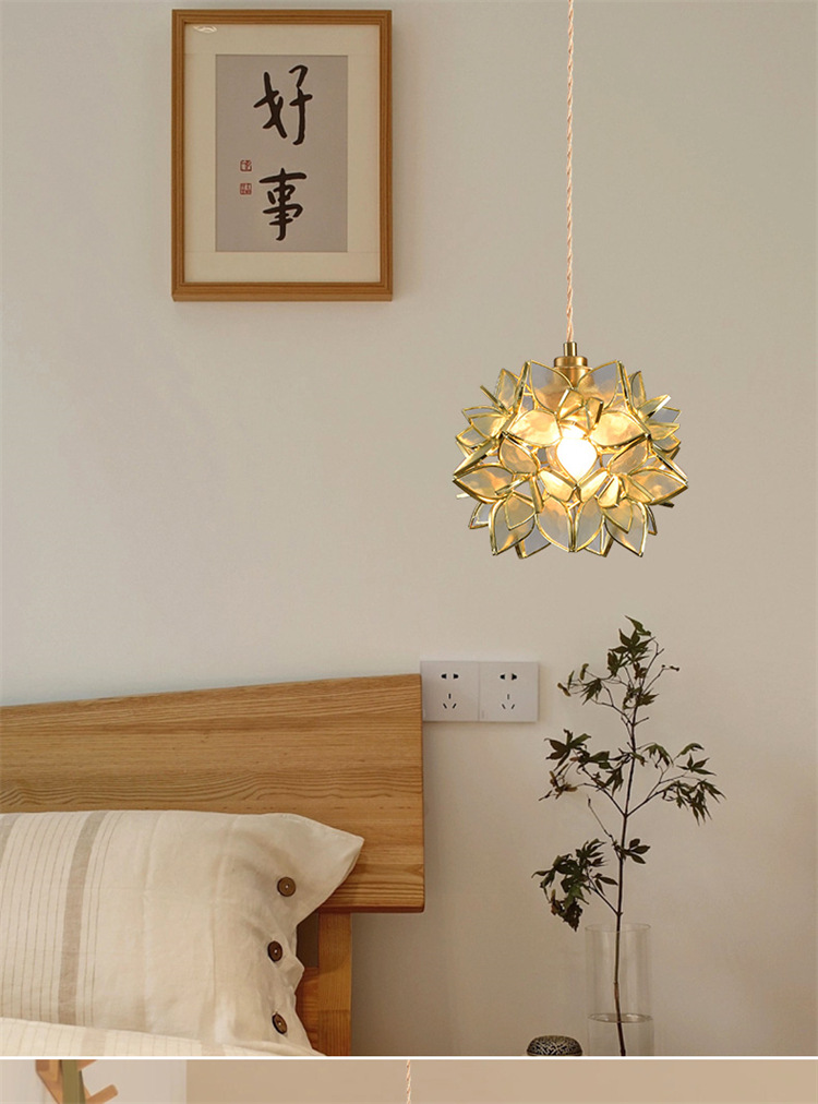 Candelabro de pétalos de vidrio totalmente de cobre de estilo japonés para comedor, cafetería, pequeño bar, lámpara de noche de dormitorio sencilla y acogedora de lujo ligero.