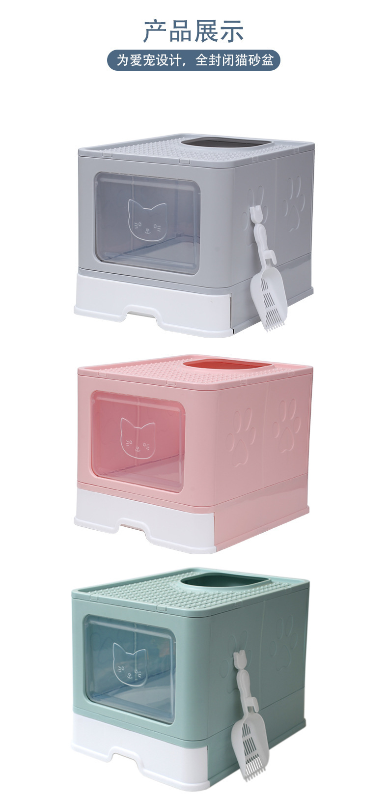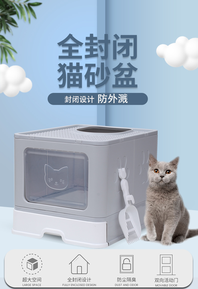 Cajón de arena para gatos cerrado totalmente cerrado tienda de mascotas mayorista Amazon cajón de cajón grande plegable para gatos