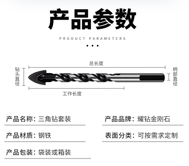 Conjunto de brocas triangulares transfronterizas brocas de cerámica brocas triangulares perforadoras de pared perforadoras de piedra brocas de torsión